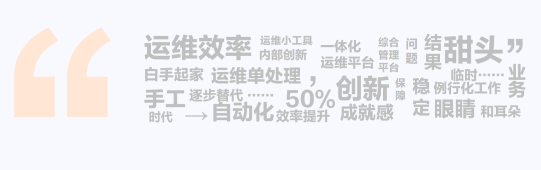 运维效率提升了,系统的稳定运行更有保障了,这让我们非常有成就感。同时,对我们自己来说,双手解放了,也有更多时间优化工作了,我们也尝到了创新的甜头。