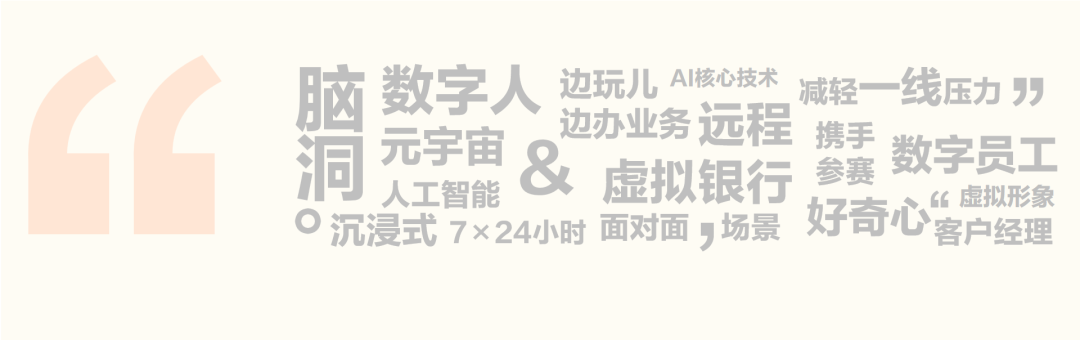 希望在未来建成远程虚拟银行——客户通过线上沉浸式场景,足不出户即可享受边玩儿边办业务的极致体验。
