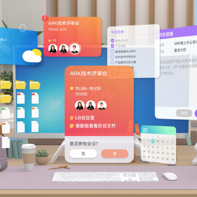在咱的远程虚拟银行中,时间和空间的局限将被打破。每位员工、客户都将有一个虚拟形象,通过VR、AR等辅助设备,在这里进行远程办公、学习、交易等活动。各类数字人柜员、理财经理、客户经理等等,和咱的员工一起,在这里为客户提供全天候、专业化且有趣味的金融服务。
