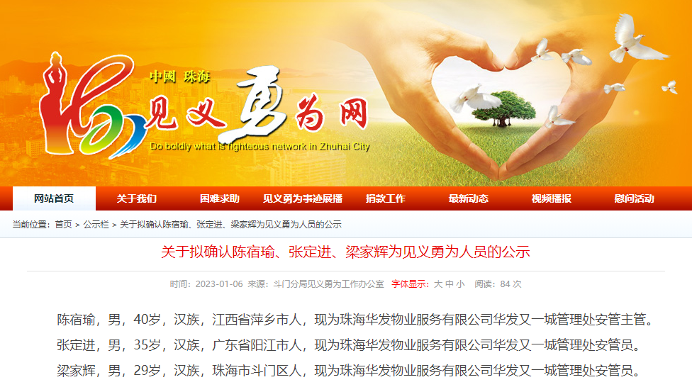 // 珠海见义勇为网发布表彰公示