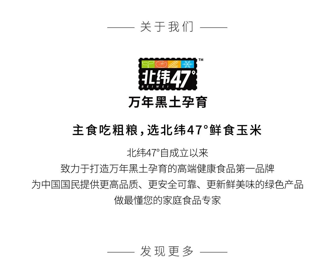 凭借着万年黑土地的给养,历经58道工序、16重精选,以及全球领先的3小时锁鲜工艺*,让北纬47°鲜食玉米一经上市便受到广大消费者喜爱,成为消费者持续复购的鲜食玉米品牌。