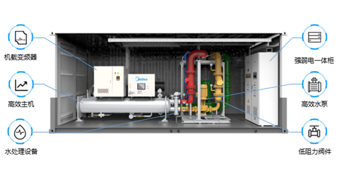 美的楼宇科技根据华南某数据中心项目需要,将其制冷系统进行拆分模块化设计,分为冷源模块、冷水模块、冷却模块和液冷模块,四个模块在工厂预制设计生产,整体出货,相较传统的施工模式极大地缩短了施工周期。在节能效果方面,该数据中心主机采用3台高温出水数据中心专用冷水机组,经连续8个月现场测试,数据中心系统COP为5.26,整体PUE<1.25,节能效果显著。
