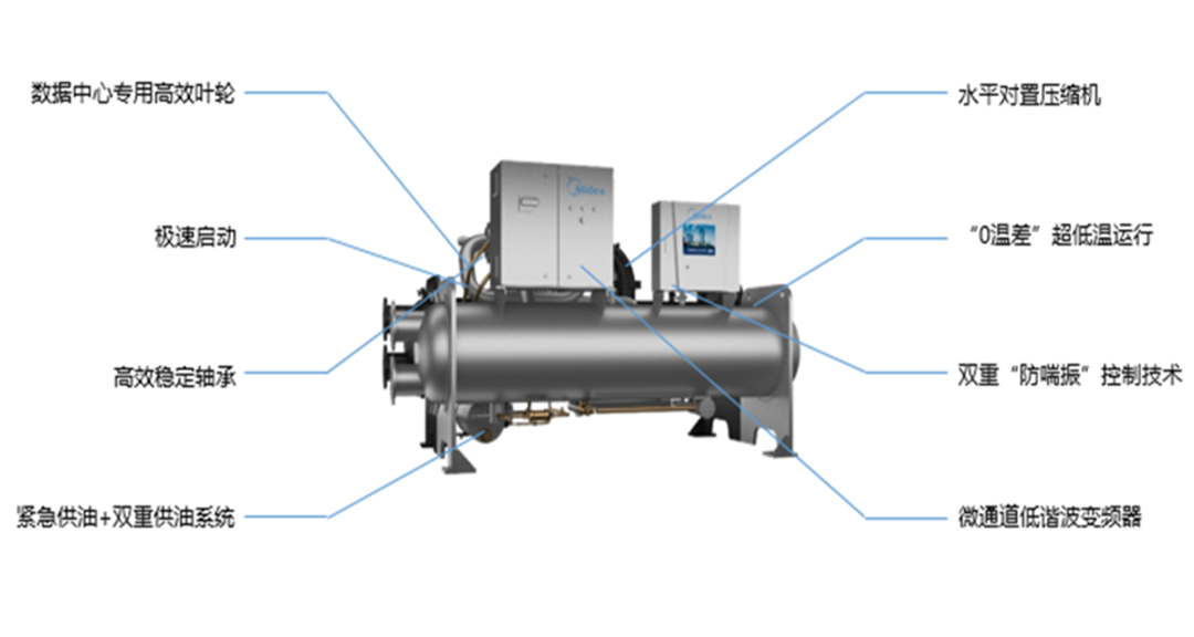 广州白云国际机场T2航站楼数据中心采用美的中高温出水变频直驱离心机组,经技术分析和实测数据对比,美的中高温出水变频直驱离心机组相对于同冷量标准工况的定频离心机组和变频直驱离心机组,节能率分别可达到31.0%和22.8%。