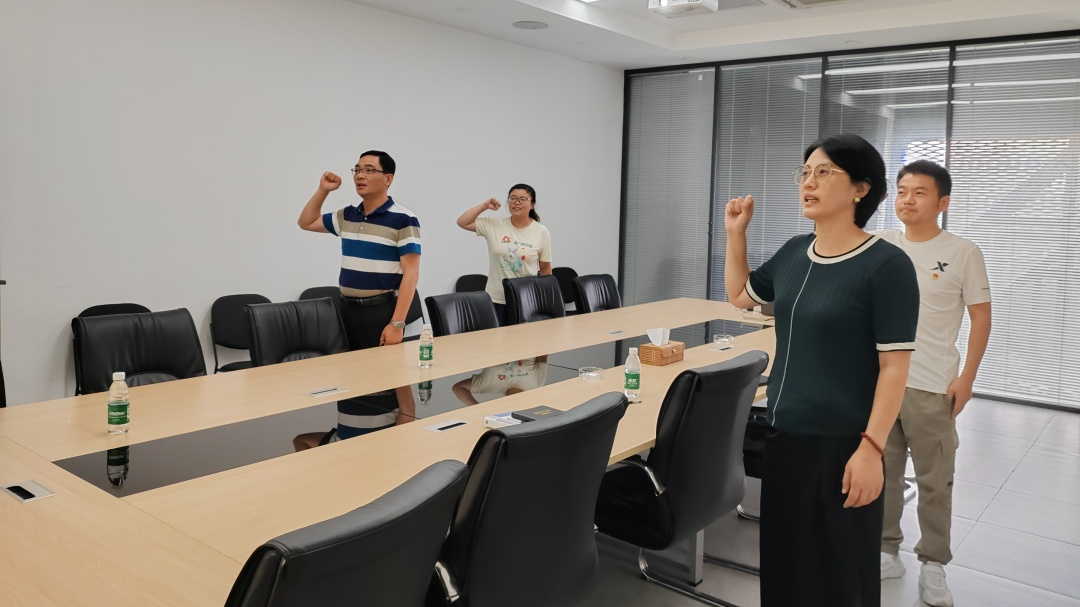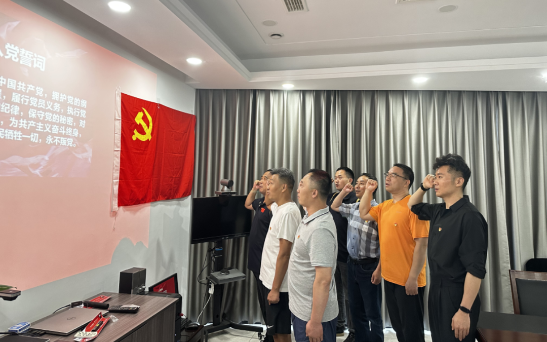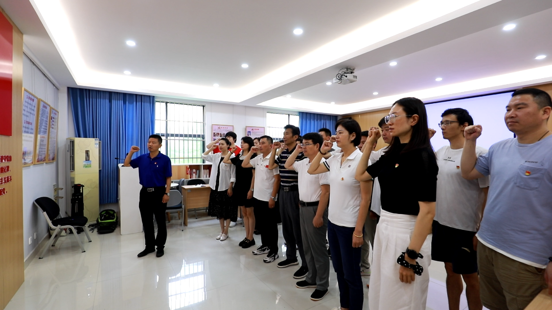 党员们高举右拳,庄严宣誓,