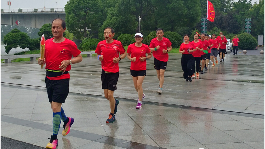 扬州长跑爱好者用奔跑为党庆生。