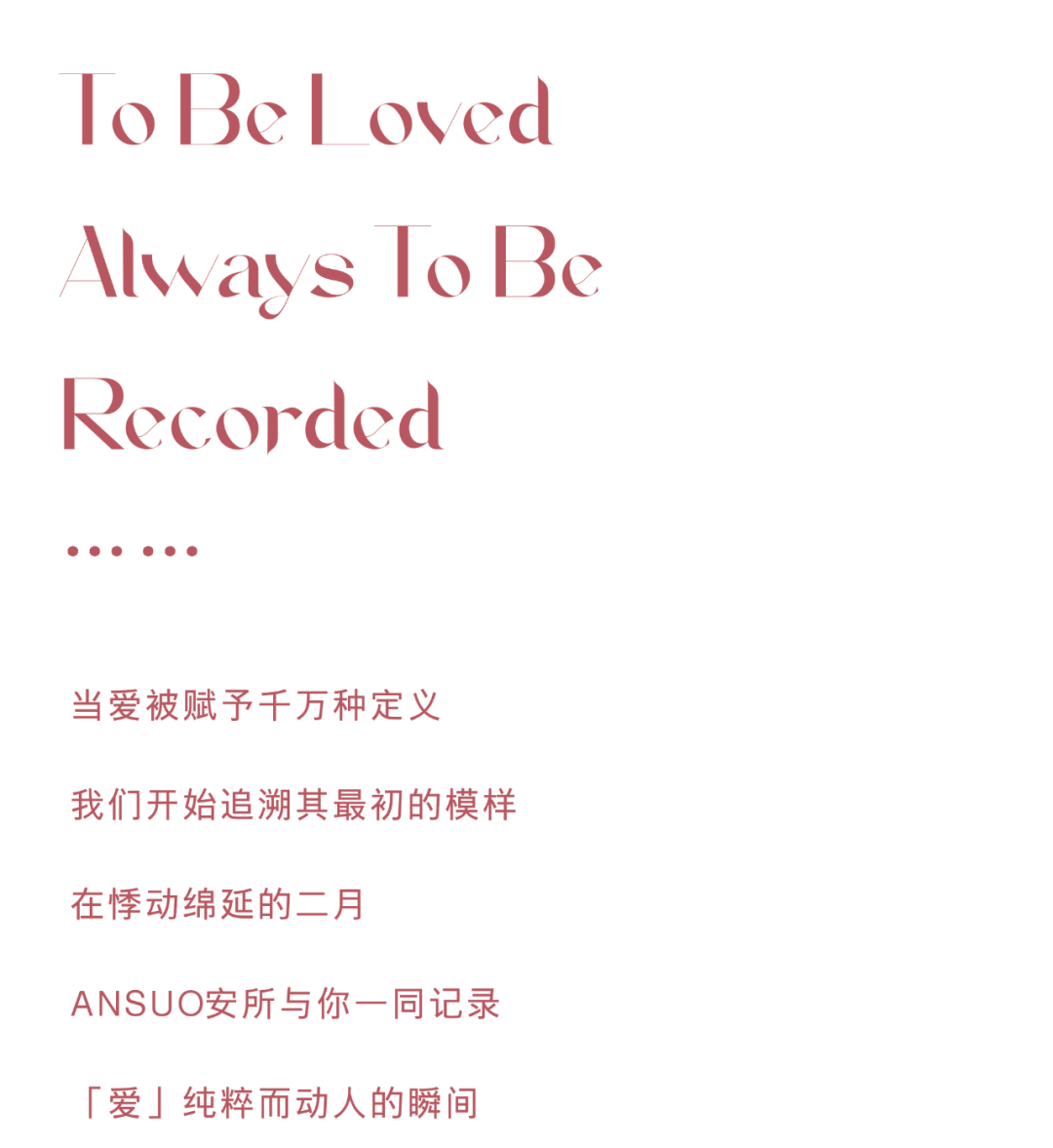 摘要:在悸动绵延的二月,ANSUO安所与你一同记录,「爱」纯粹而动人的瞬间。