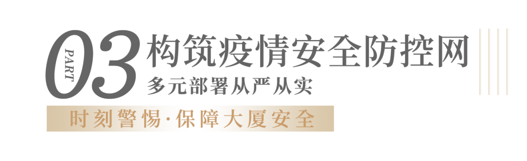 严格执行进出人员测体温、查场所码绿码、佩戴口罩,确保精准防控,有异常及时处理,守住全体客户的第一道防线;实施分区分级消毒制度,对写字楼、商场进行360°全面专业消杀;强化洗手盆、门把手、冲水按键、电梯扶手等公区的消毒频次.....细致入微,充分保障写字楼及商场的洁净与安全,以实际行动为租户提供安心放心的工作环境。
