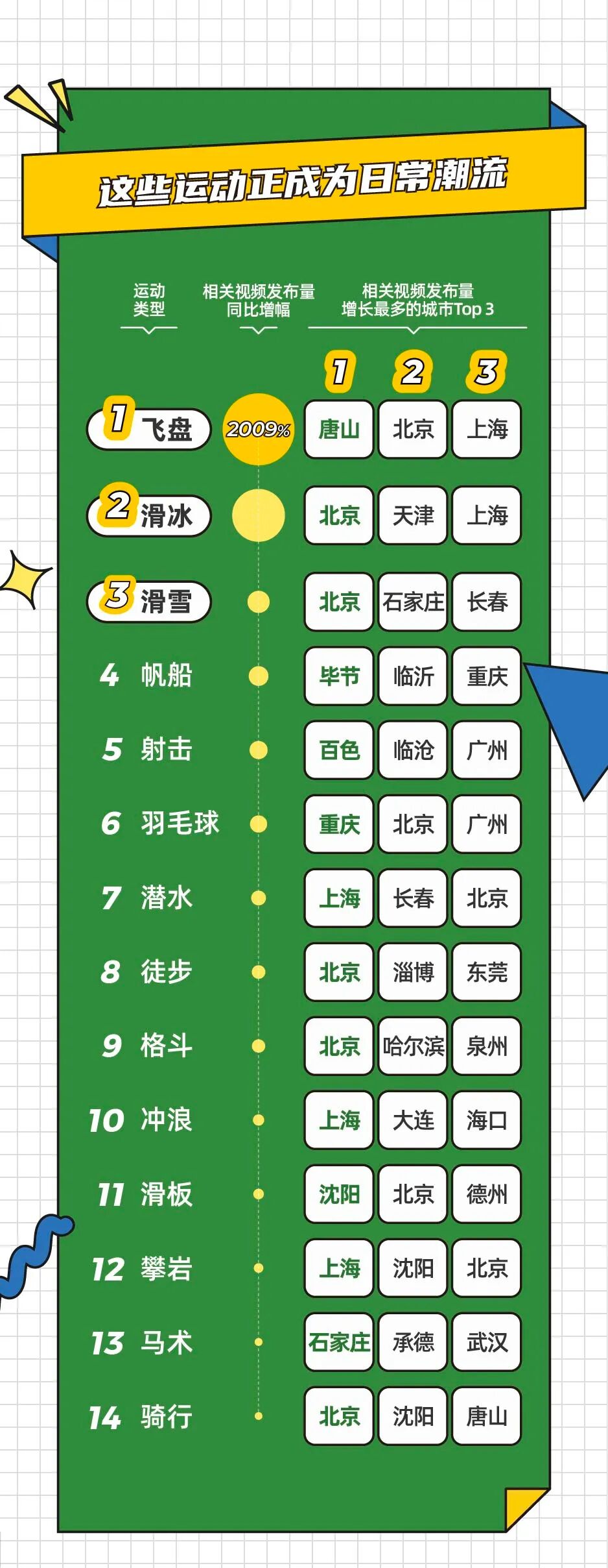 摘要:飞盘、滑冰、滑雪成热度跃升最快的运动项目
