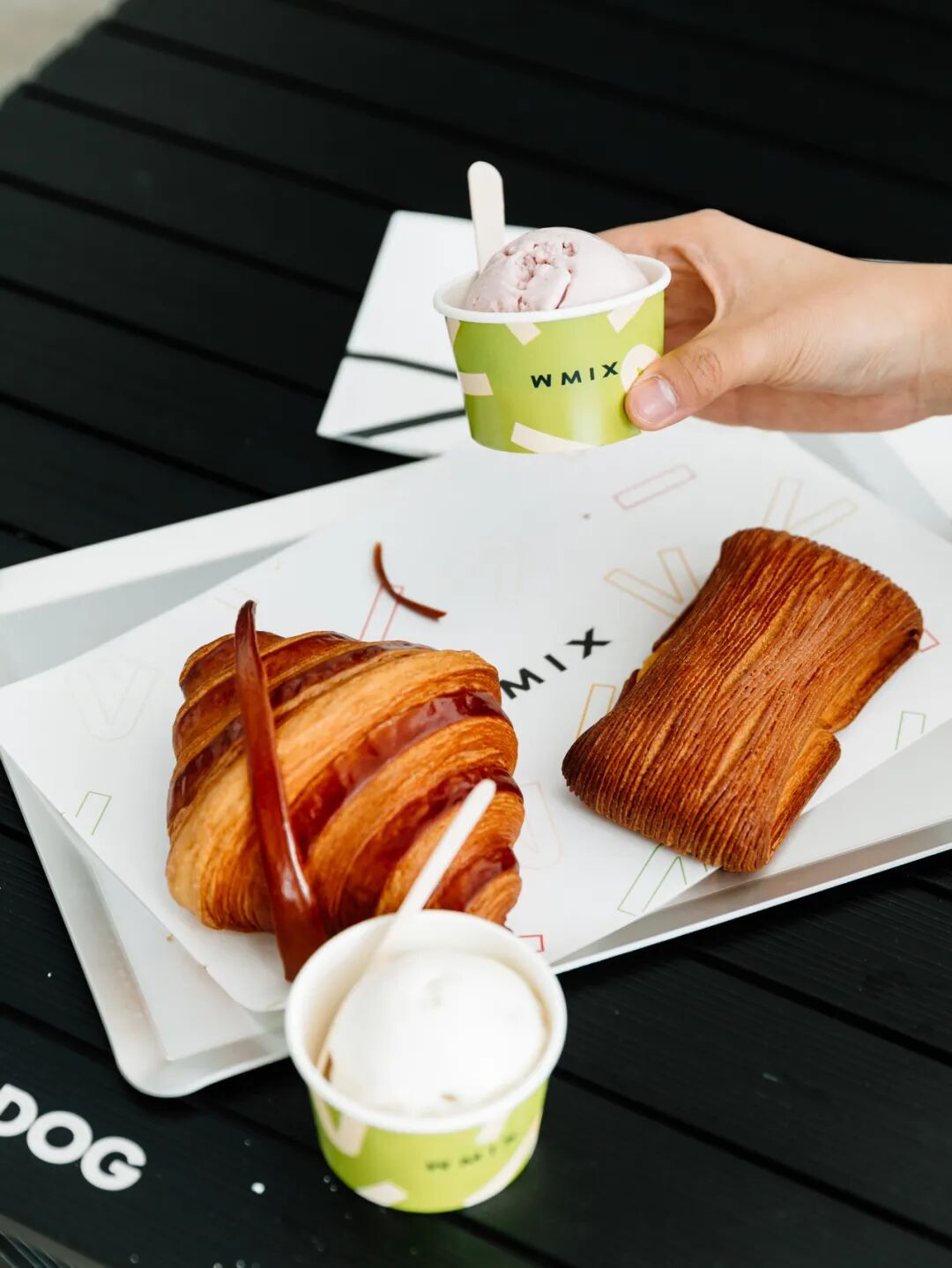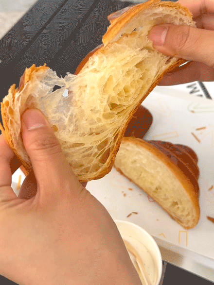 可颂非常蓬松轻盈,咬下一口直掉渣,搭配上店内的自制gelato,就是更加适合夏日的DIY可颂吃法,冰凉甜美,值得一试!