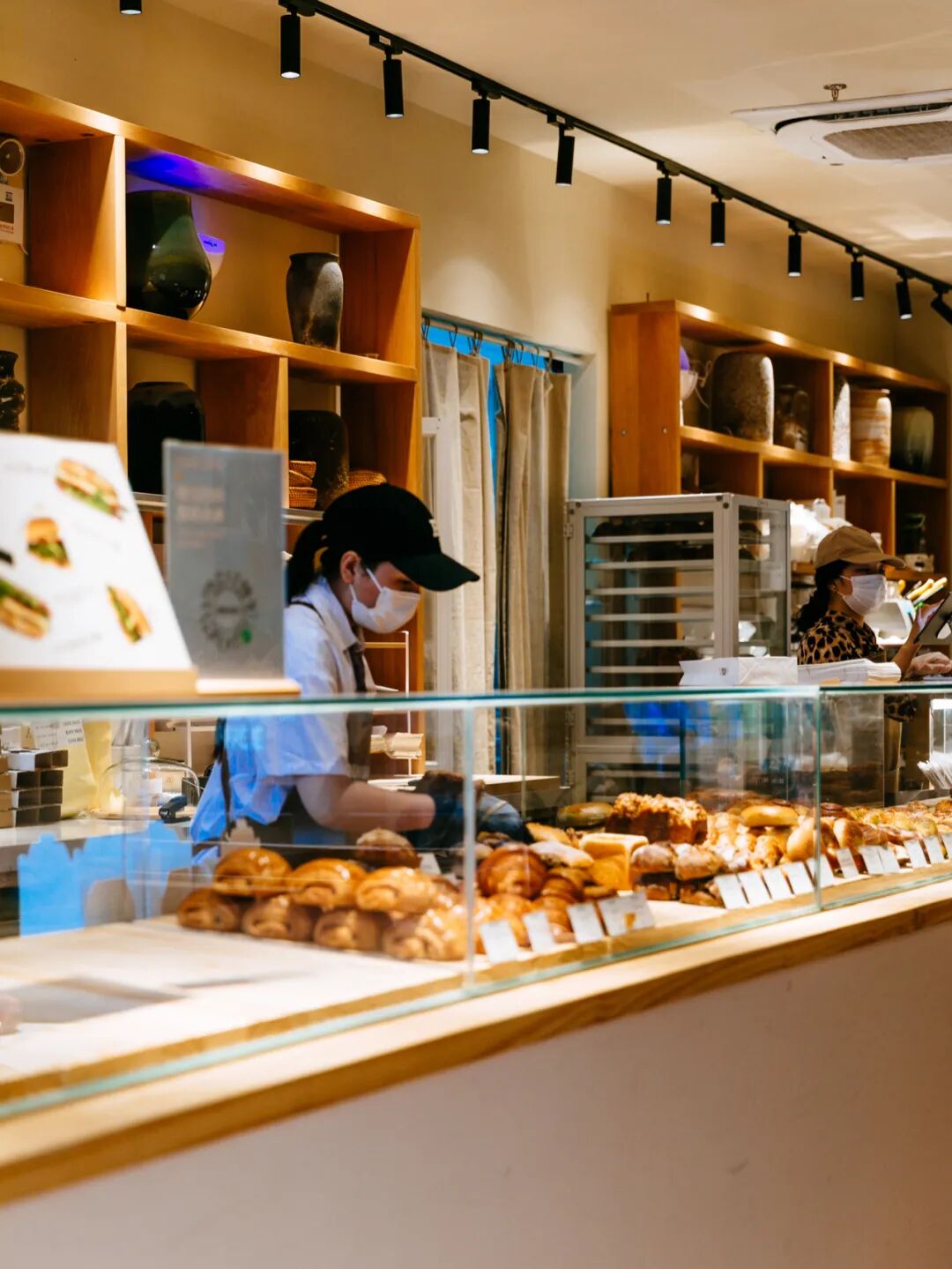 来逛商场时很难不被这家面包香四溢的店吸引。各式面包选择丰富,从核桃蔓越莓恰巴塔、榛子黑巧花椒贝果、西梅法酸裸麦到抹茶司康等品种十分齐全,口味做得有意思的同时性价比还超高。