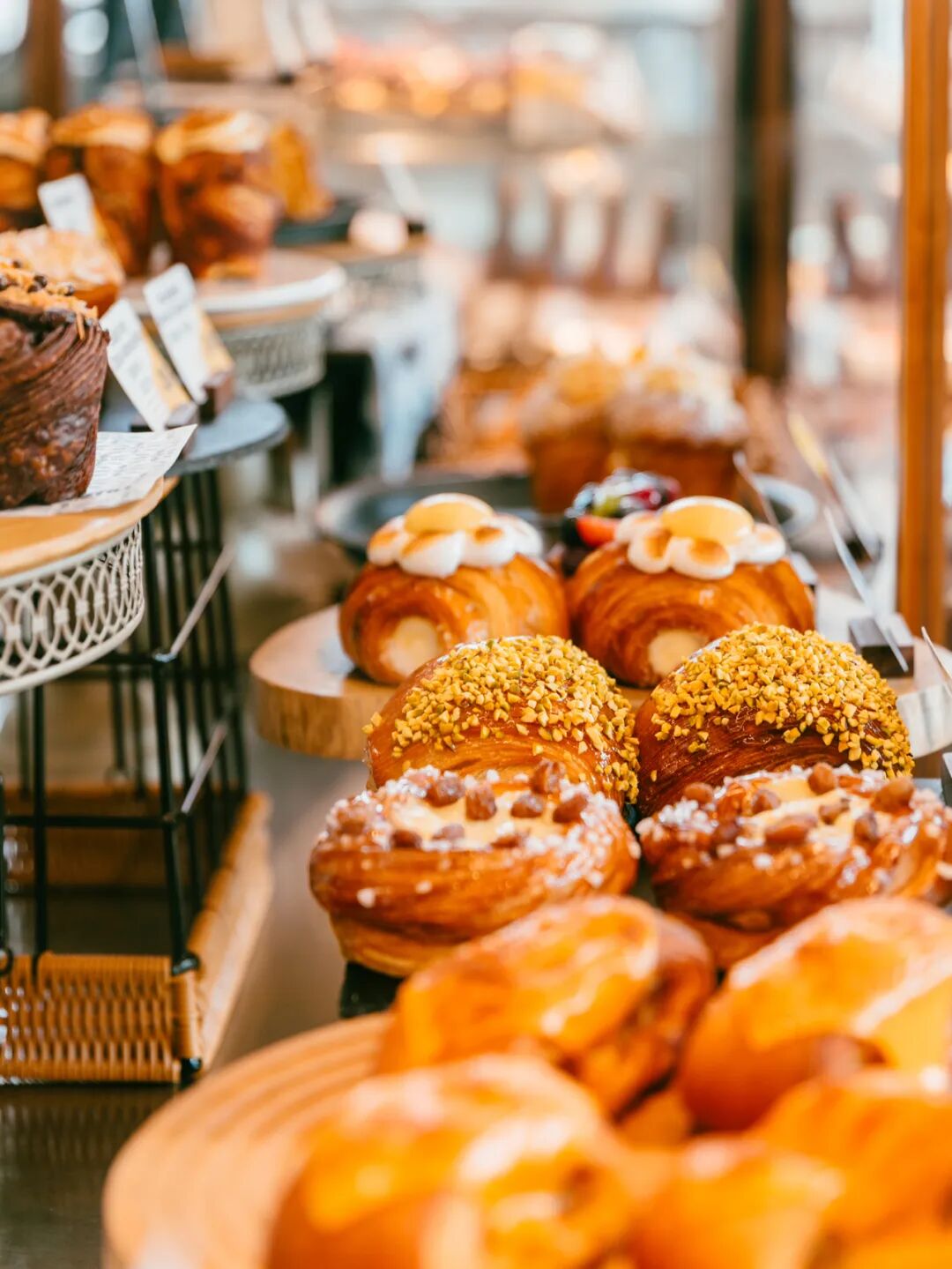 店内的点单TOP1肉桂卷也不容错过,我们这次还发现同系列出了新品,是铺满了椰子脆片的椰子西米卷,外皮依旧酥脆,内部用西米卡仕达填充,吃起来竟然有些糯口。此外,百利甜酒榛子巧克力卷、杏仁可颂卷、伊比利亚鲜肉酥、开心果可颂等也都很好吃,酥皮脑袋必冲!