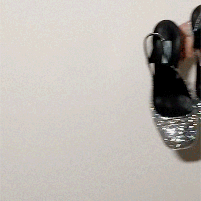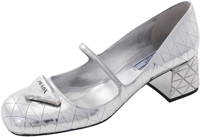 PRADA标志性的三角形也被解构重组,在镜面皮革上「切割」出几何图形,又像冰块又像钻石,连可爱的玛丽珍鞋都顿时酷,还带点凛冽的感觉。