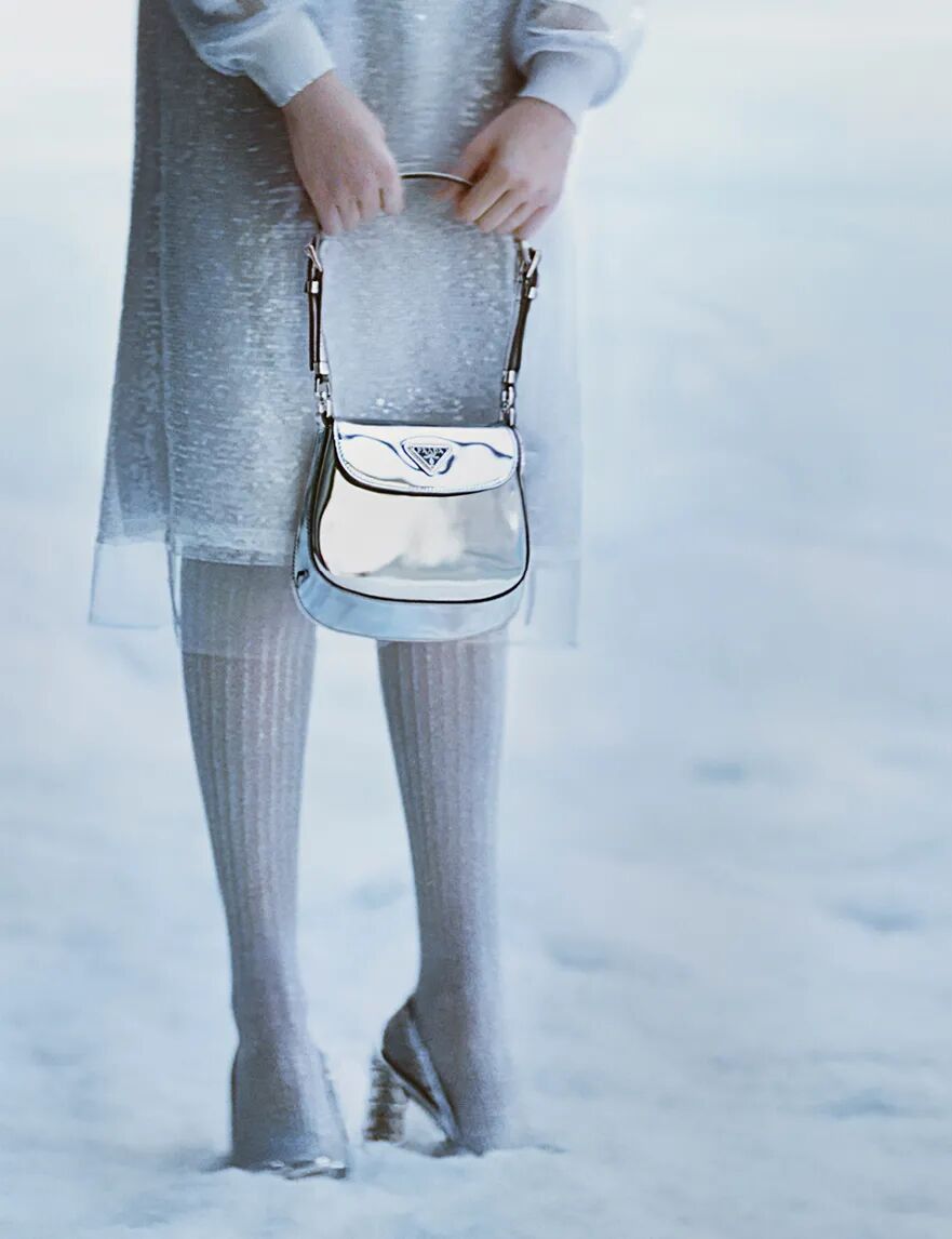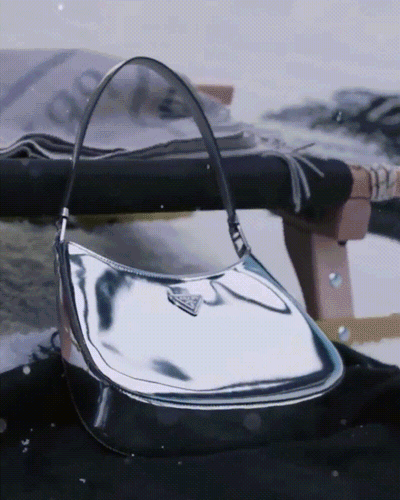 有闪当然也有亮,PRADA今年大热的Cleo手袋这次换上了镜面皮革。