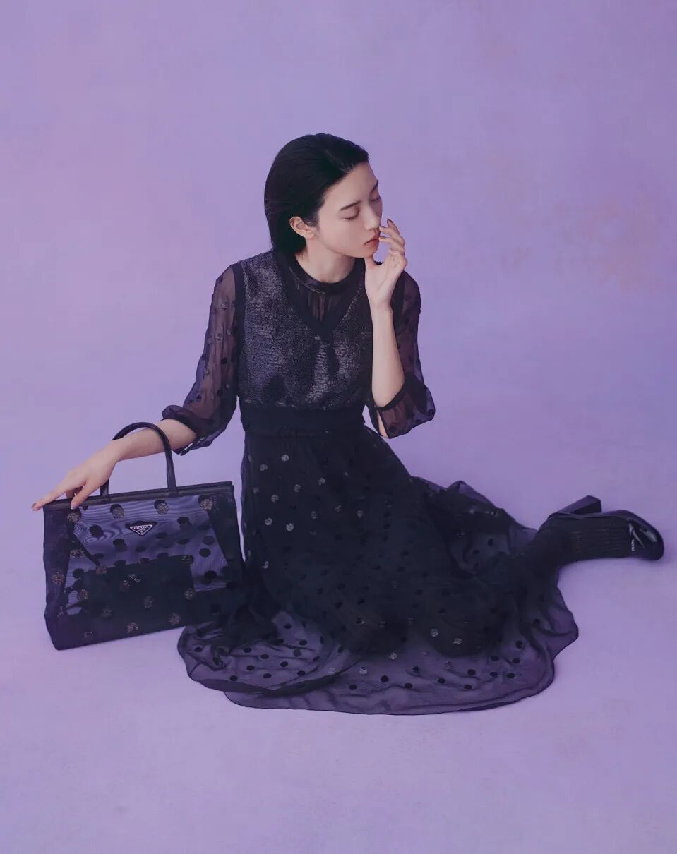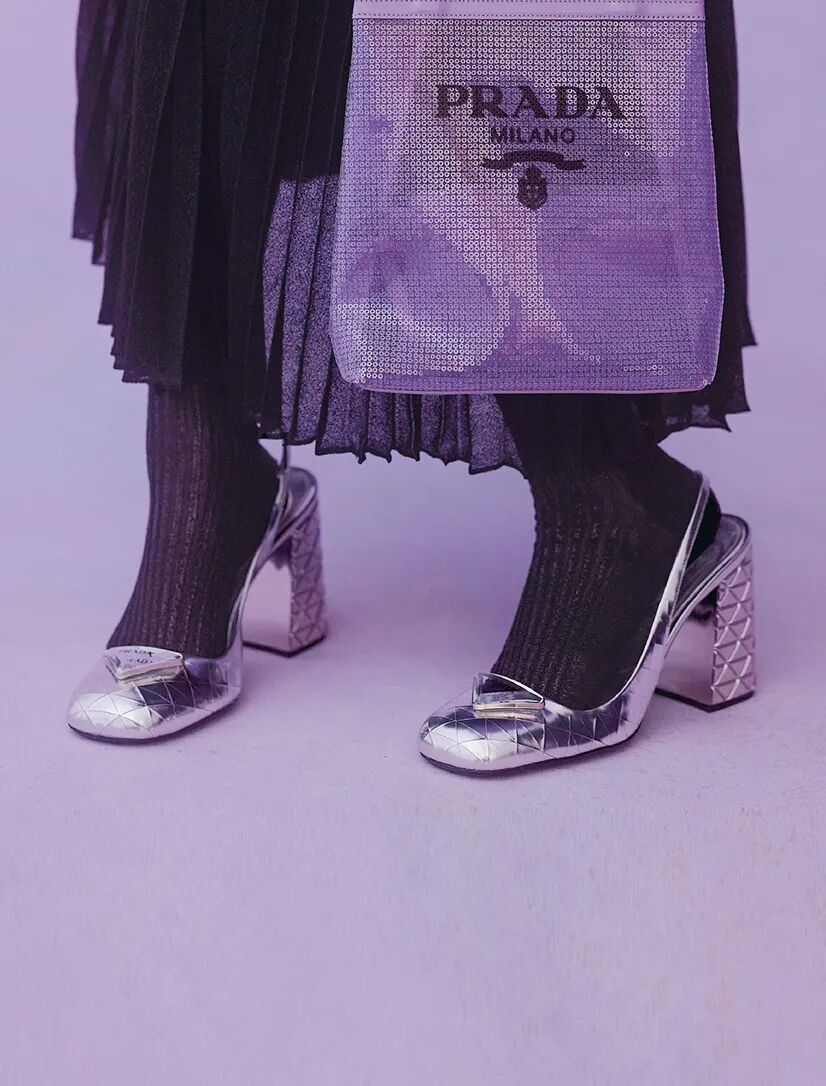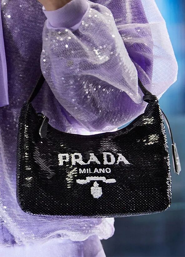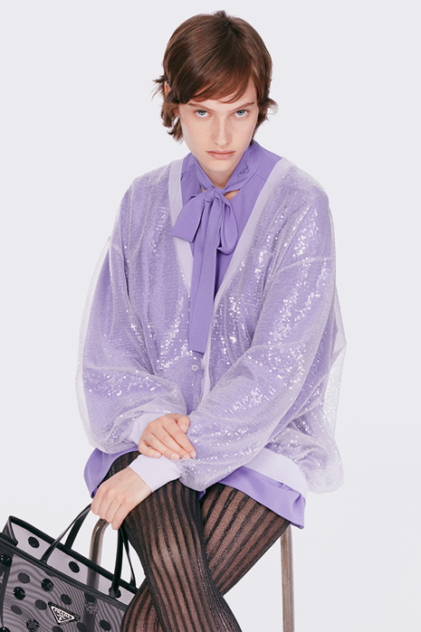 在今年的假日系列中,PRADA运用了各种或轻薄或闪亮的面料和材质,让紫色的梦幻氛围加倍。