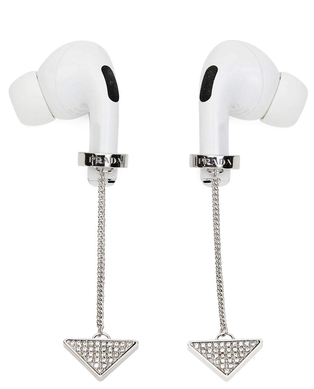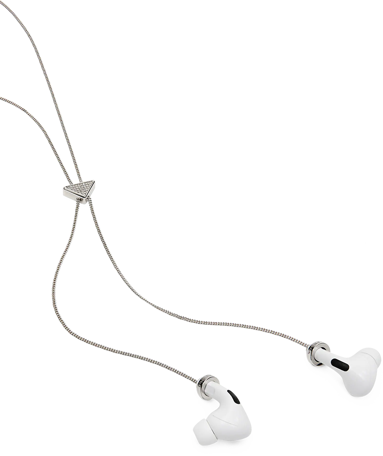 图里的耳环和项链尾端都有小圈,当首饰佩戴时圈圈是吊坠,而圈圈内径正好可以插入AirPods,上下一反,摇身一变成为超酷的耳机配饰。
