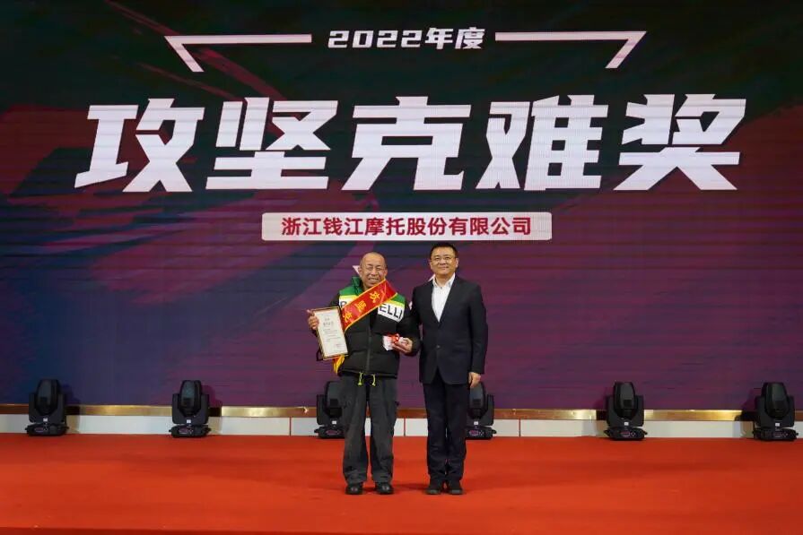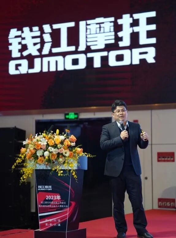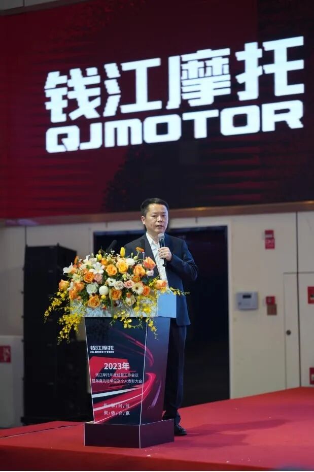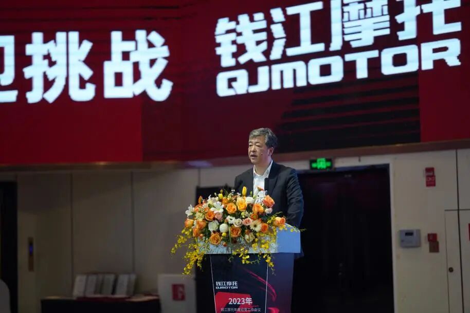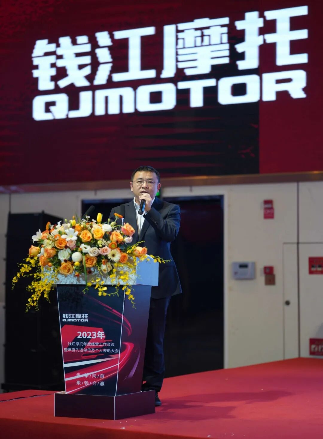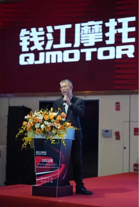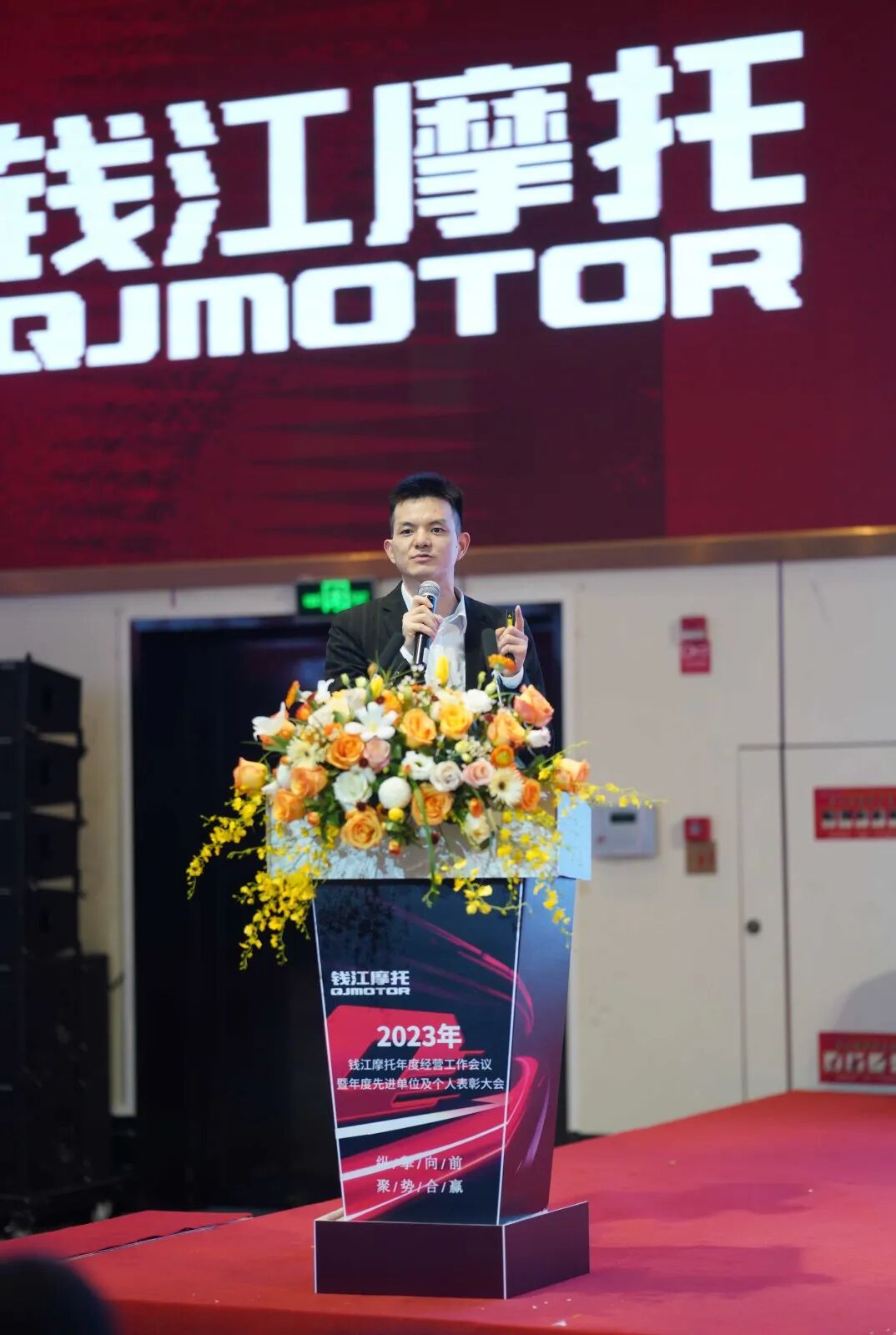 公司副总裁吴萍辉主持会议并表示,过去一年全球经济形势复杂严峻,诸多行业面临着经营困境,摩托车行业也受到了一定影响。钱江摩托面对复杂的经济形势与市场环境,通过全体同仁的共同努力,以“国货、国潮、国牌”的钱江模式,抓住机遇,不断逆势突破,全面超越了2022各项指标,创造了历史性的突破。并实现了 250cc 以上中大排量摩托车连续十一年国内销量冠军,进一步夯实了中大排量摩托车先行者和引领者的地位。同时也希望大家以更加昂扬的斗志,更加坚定的步伐,共同创造更加辉煌的2023。