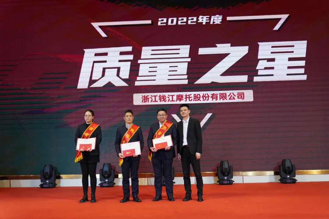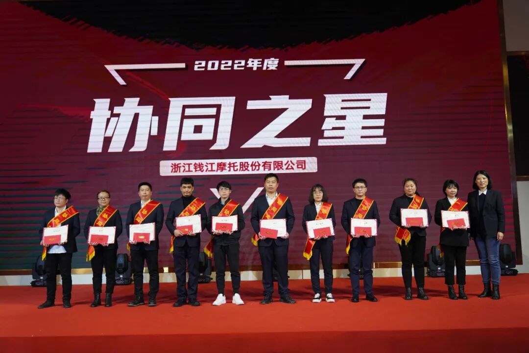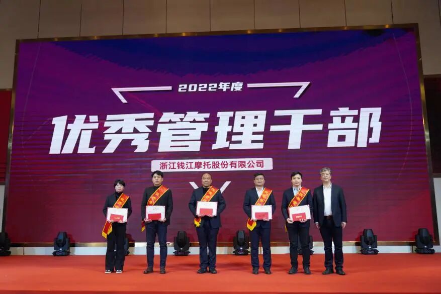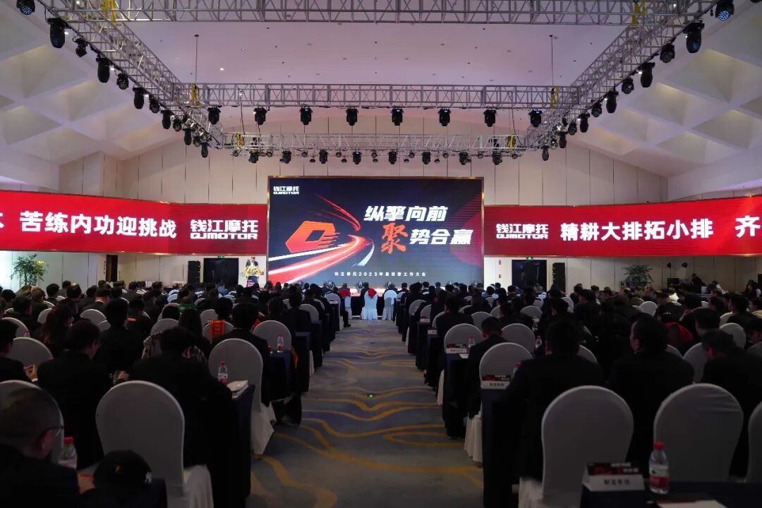 2023年2月7日,钱江摩托2023年度经营工作会议暨 2022 年度先进表彰大会在温岭九龙湖国际宴会中心召开。会议全面总结了2022年度工作成效、洞察行业形势,明确统一思想,并以新时期的企业发展要求安排部署2023年度主要工作。同时会议还表彰了2022年度公司各业务单位涌现出的先进单位与先进工作者。参与本次会议的有,公司所属各单位副部级以上干部、核心骨干、全国各销售机构负责人,QJMOTOR经销商伙伴以及公司先进代表和个人等。