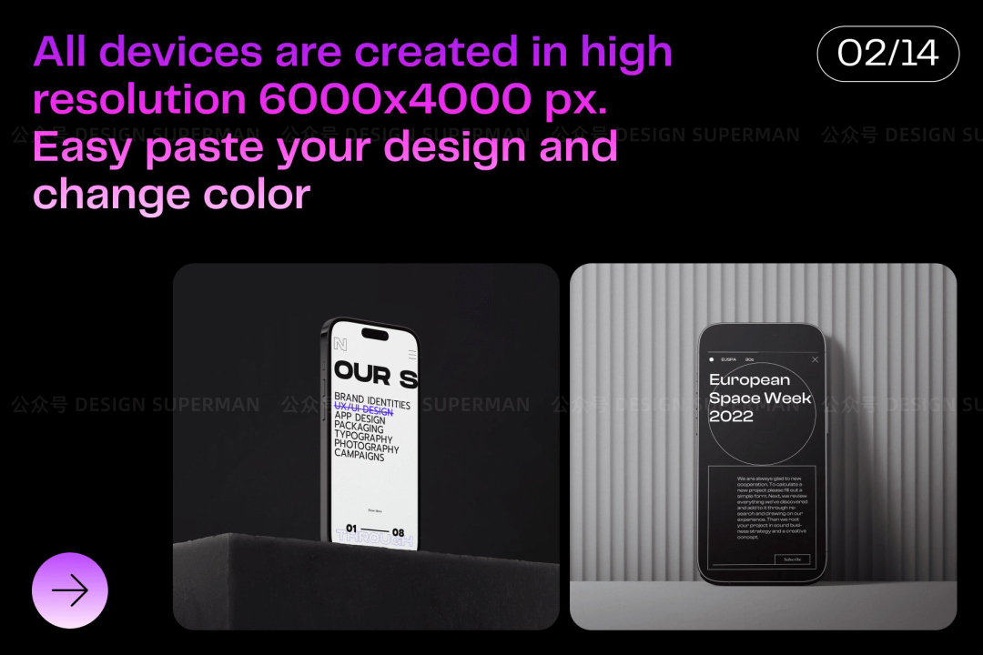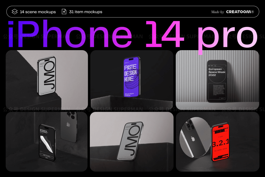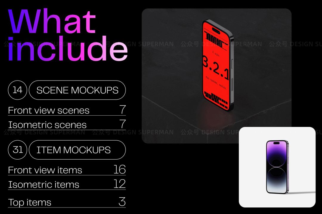 摘要:给大家分享一组作品集可能会用到的素材 iPhone 14 Pro 场景样机模板