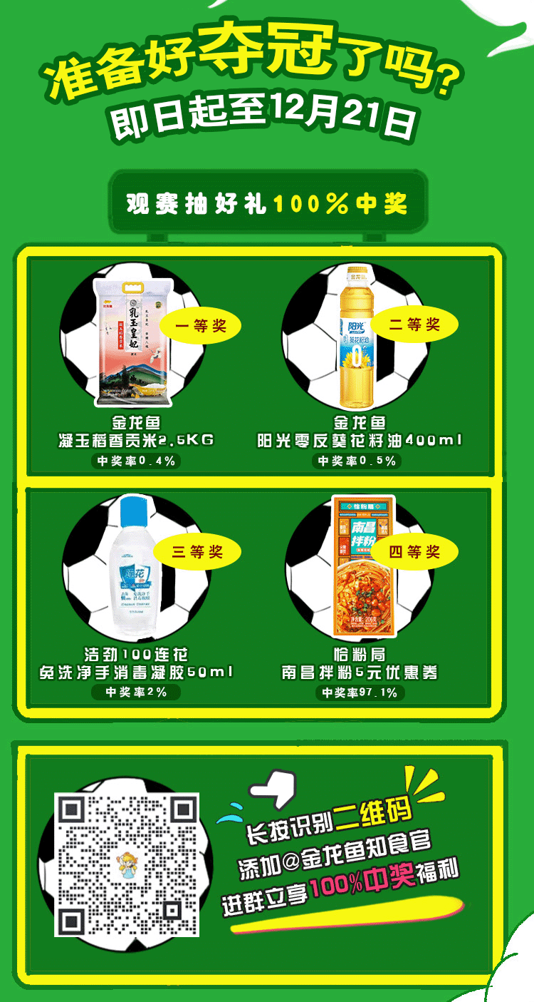 摘要:观赛福利→100%中奖粮油好物(文末有奖)