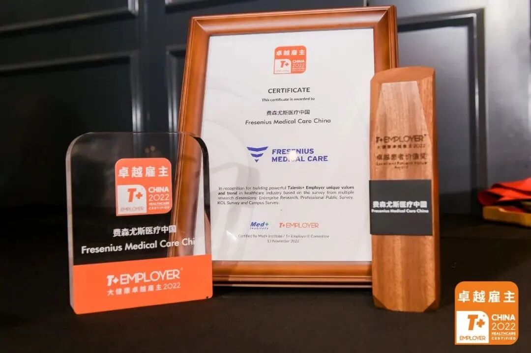 费森尤斯医疗中国荣膺「T+ Employer®大健康卓越雇主2022」认证,这是中国大健康行业专属垂直领域的雇主品牌认证。彰显了费森尤斯医疗可持续、敏捷和创新的集团举措,成功催化了以“每一天为全球患者创造富有价值的未来”为企业宗旨的价值增长和释放。