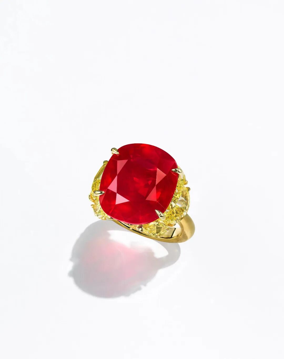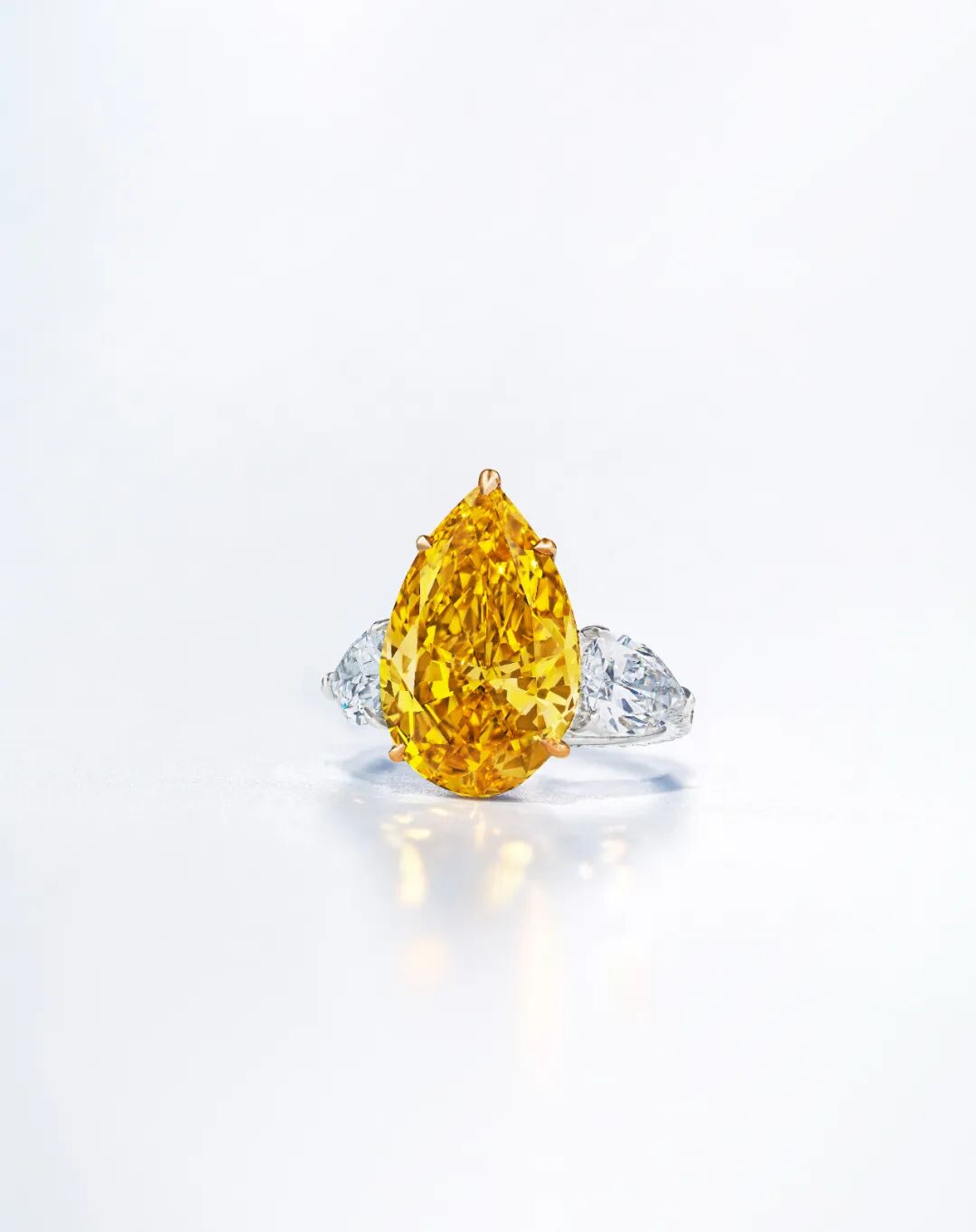 虽然预展上未能呈献,但即将在后续拍卖活动中亮相的16.05克拉枕形缅甸天然鸽血红红宝石及钻石戒指成为吸睛的存在。“The Mythic Ruby” 所呈现的浓烈“鸽血红”色调及闪耀天然荧光,高浓度的铬令宝石加倍璀璨,在阳光的照射下更加耀眼夺目。值得期待的还有4.83克拉艳彩蓝色内无瑕钻戒,这枚非凡的天然蓝钻石代表着智慧、真理与忠诚。而极其稀有的纯正蓝调艳彩备受追捧,剔透无瑕的品相更突显了钻石的卓越净度,散发出满满的吸引力。另一枚精选色泽艳彩饱满的8.92克拉艳彩黄橙色内无瑕钻石戒指同样拉满期待值,绚丽夺目的宝石闪耀着极为罕见且饱和度极高的黄橙色调,犹如金色火焰,由内而外地散发出奢华之气。