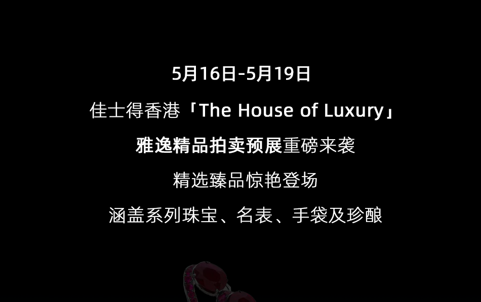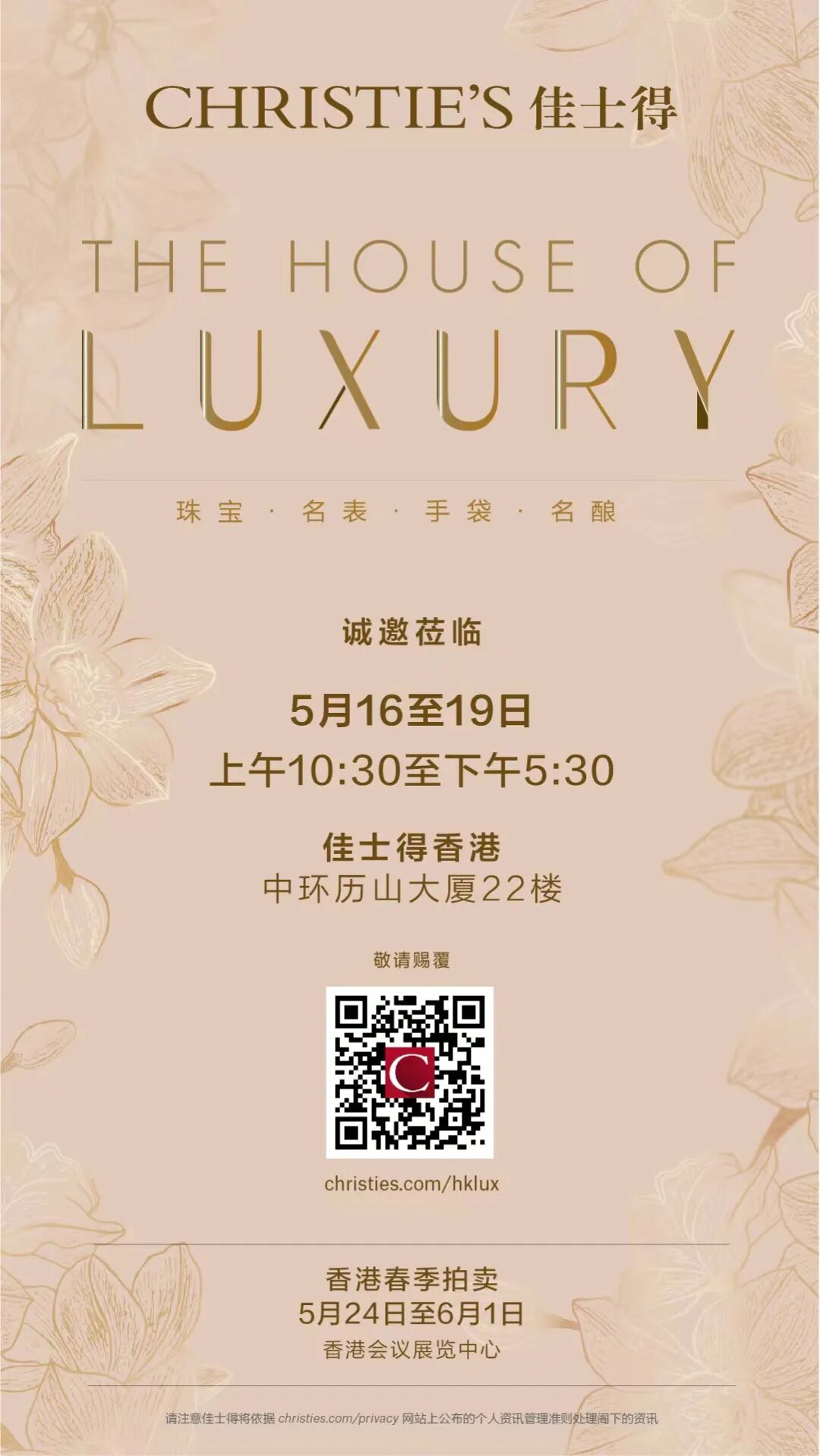 拥有多元化拍卖超越80个艺术及雅逸精品类别的佳士得,横跨美洲、欧洲、中东及太平洋地区的46个国家及城市,在香港、纽约、伦敦、巴黎…还开设了大型国际拍卖中心。盎然生机的春夏时刻,佳士得将百年瑰丽风潮蔓延至香港——「The House of Luxury」雅逸精品拍卖预展,将于5月16日至19日登陆香港中环历山大厦,限时开启一场奢华盛宴!
