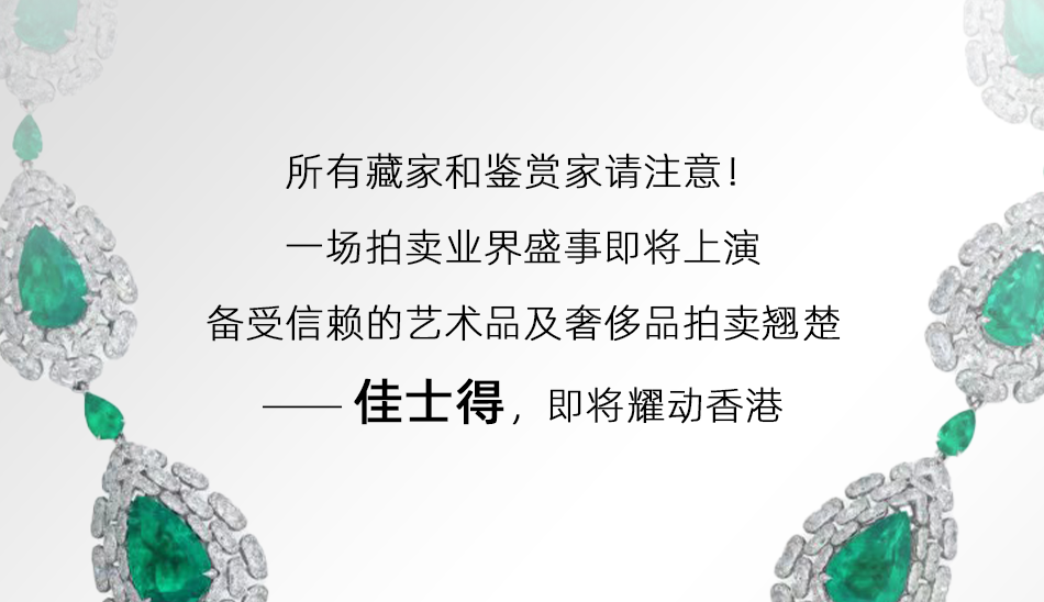 自古以来,晶莹剔透的珠宝翡翠就以祥瑞灵秀的传奇色彩俘获了无数人的芳心,而翡翠在华夏大地更是财富与地位的象征。佳士得香港将于5月27日开启瑰丽珠宝及翡翠首饰春季现场拍卖,重磅呈现超150件精美藏品。
