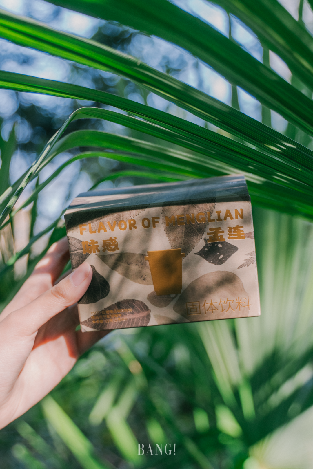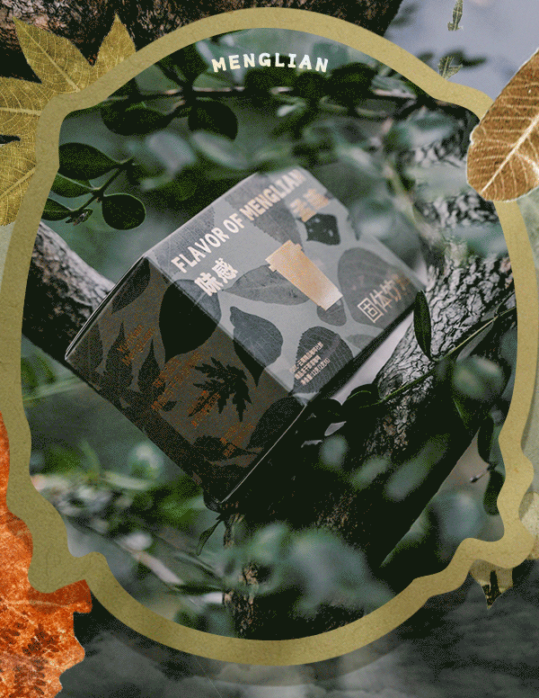 礼盒上飘散的落叶把我们带回那片葱郁山林中,由云南本土艺术家鸿雁老师用植物拓印的方式创作的【拓印森林】艺术品,汲取植物纹理与色彩,保留住了云南孟连的独特风味感受,在四季轮转间叶子回黄转绿,诉说着自己的故事。