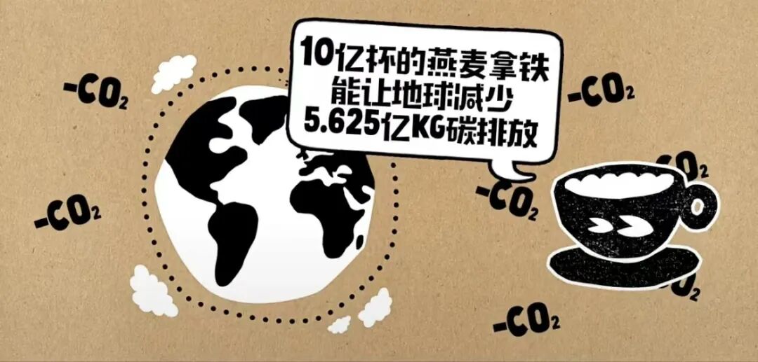 据统计,每一杯用燕麦奶焕新的饮品可减少70%温室气体的排放,对土地和水资源的消耗也减少90%¹,10亿杯的燕麦拿铁能让地球减少5.625亿千克碳排放!