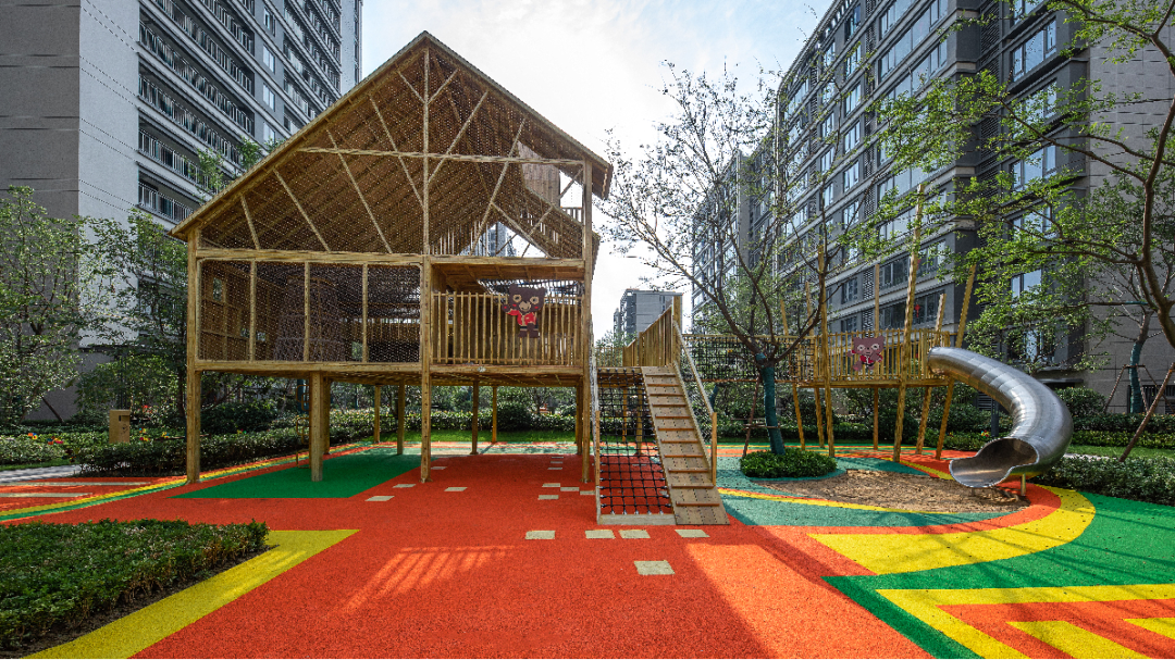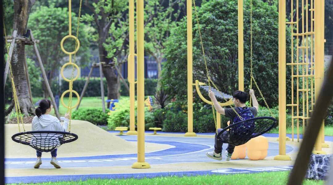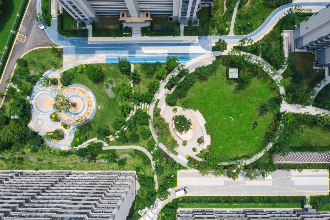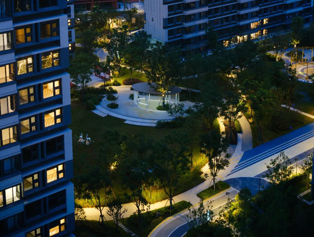 现代典雅的建筑与路旁葱郁的植物交相掩映,留白出与众不同的绿意。重庆御璟湖山顺应场地高差打造“城市森林” 中的多元社交“聚场”,蜿蜒的树阵、宽阔的阳光草坪等串联起多功能空间,全龄架空层、篮球场、星空露营草坪为业主们提供休闲交流与小聚放松的户外社交空间,让生活与美好朝夕共处。
