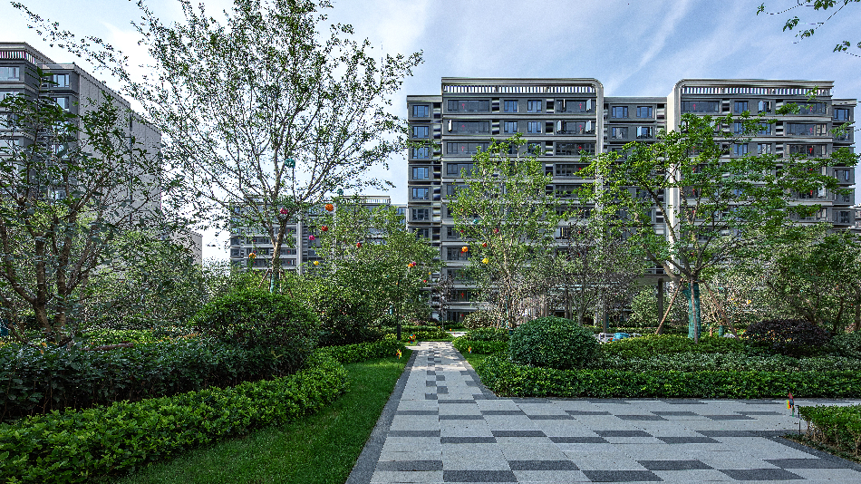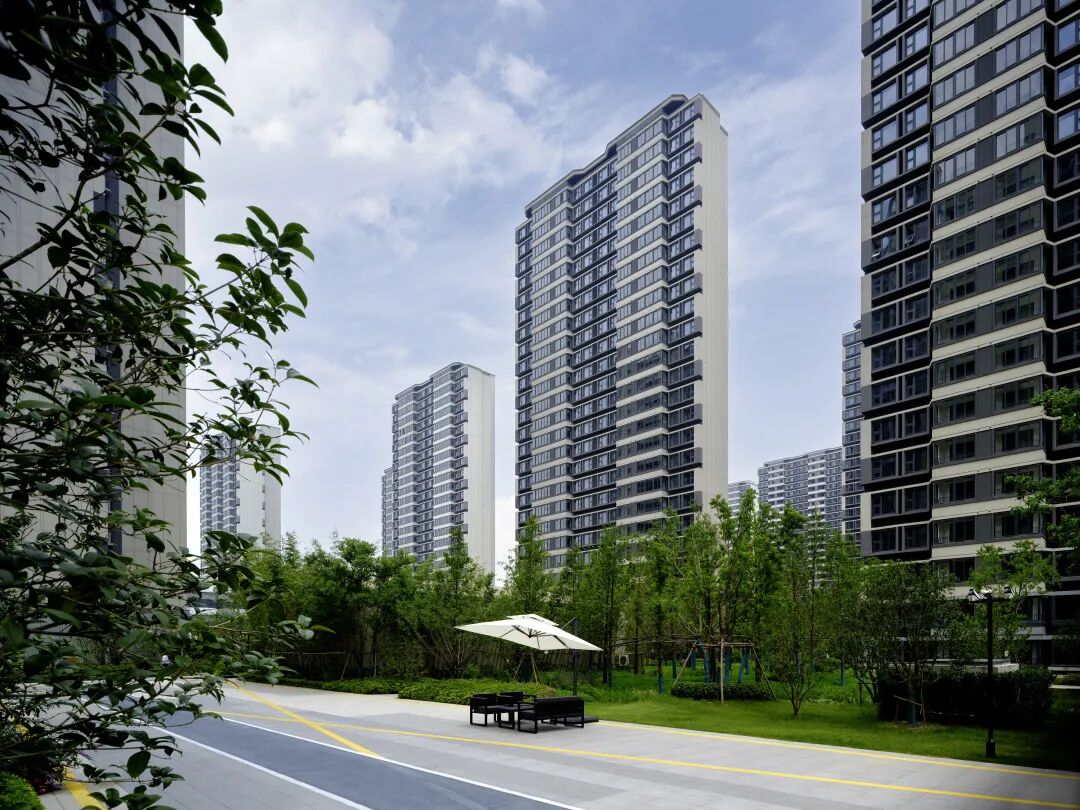 苏州旭辉铂悦湖前建筑立面以创新现代手法,保留苏州传统建筑感知,搭配玻璃幕墙,让室外的自然绿意透入室内,感受自然节令变化,让自然宜居的生活留驻在家的每一寸时光里。