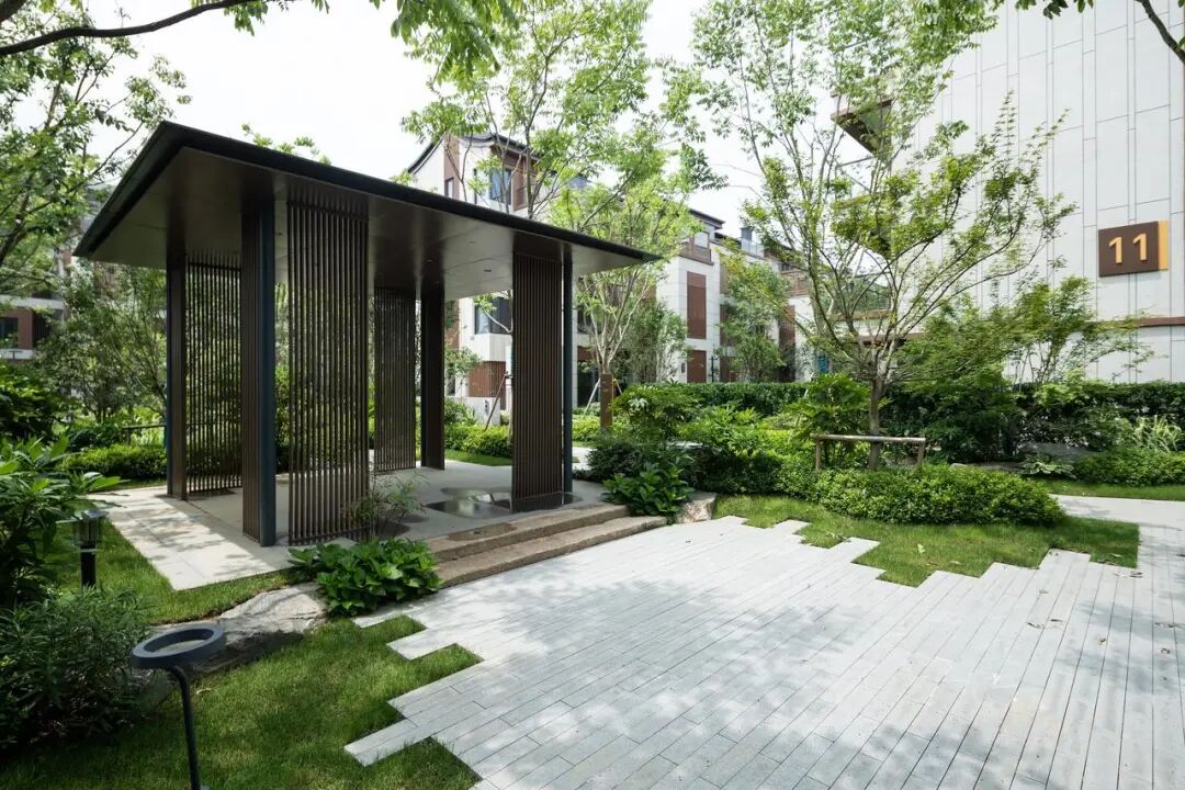 得益于落地了旭辉透明工厂“三大先行”——车库抢先行、园林优先享、管道预先铺,凤汇壹品居在交付时呈现丰盛大美之景。植物预留充分的时间生长,多种植物品种搭配,步移景异,尽显诗情画意。