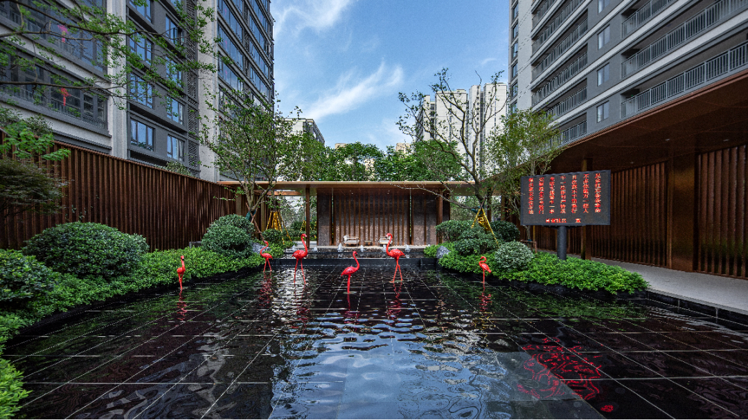 充满仪式感的归家轴线空间,水景、树阵造景与花园景观优雅相融,每一步都是葱茏诗意,温暖而沁心。