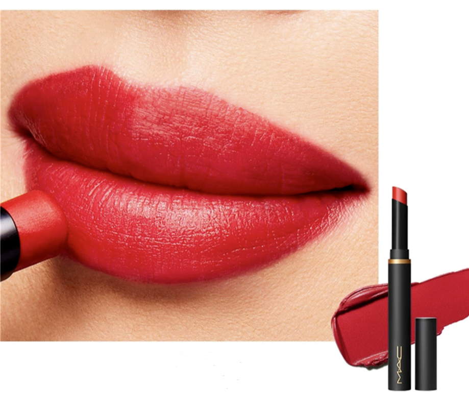 MAC全新黑魔杖细管口红,纤长精致,黑色简约的包装,拿在手上很显贵气。889 RUBY NEW宝石红色号,绝对能打的一个色号!蓝调正红色亮眼出挑!