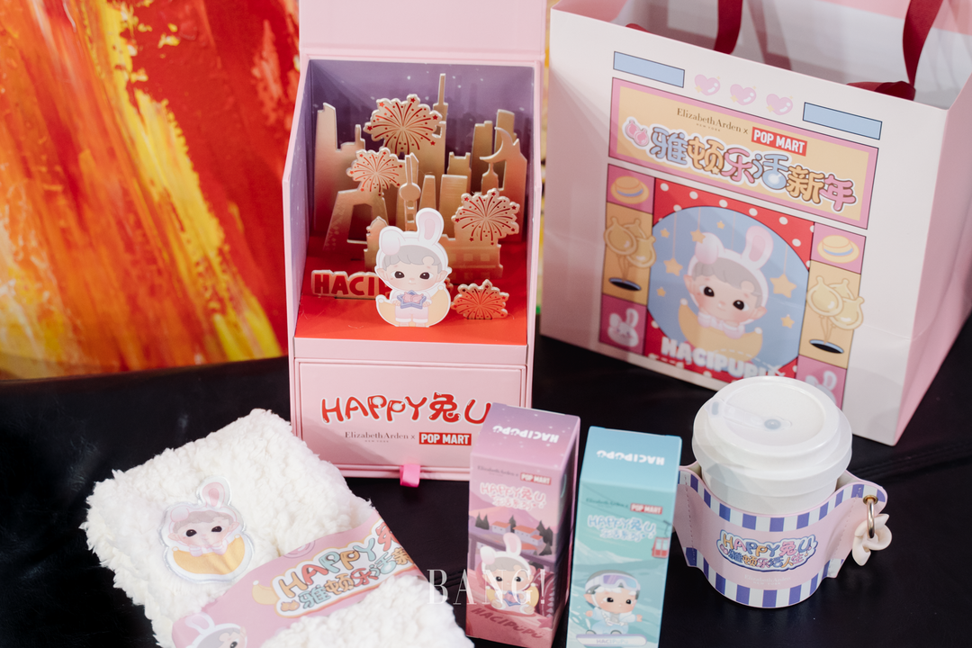 伊丽莎白雅顿与POP MART惊喜联名,与可可爱爱的HACIPUPU一起“保持童心”,以2023兔年及雅顿胶囊为灵感联手定制HACIPUPU全新乐活系列,并推出雅顿POP乐活礼盒,守护童心守护纯真,许愿每个人都拥有年轻稳定的肌肤状态!