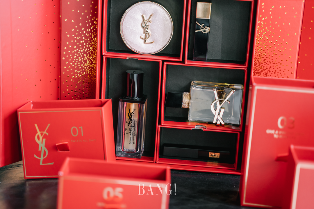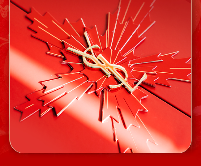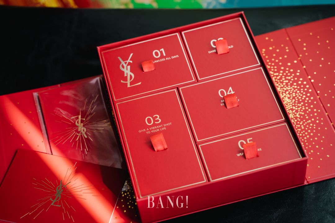YSL新年限定倒计时礼盒延续品牌经典红色和烫金LOGO,礼盒设计像枫叶又像正在绽放的烟花,充满艺术气息,倒计时设计为新年增添惊喜仪式感。