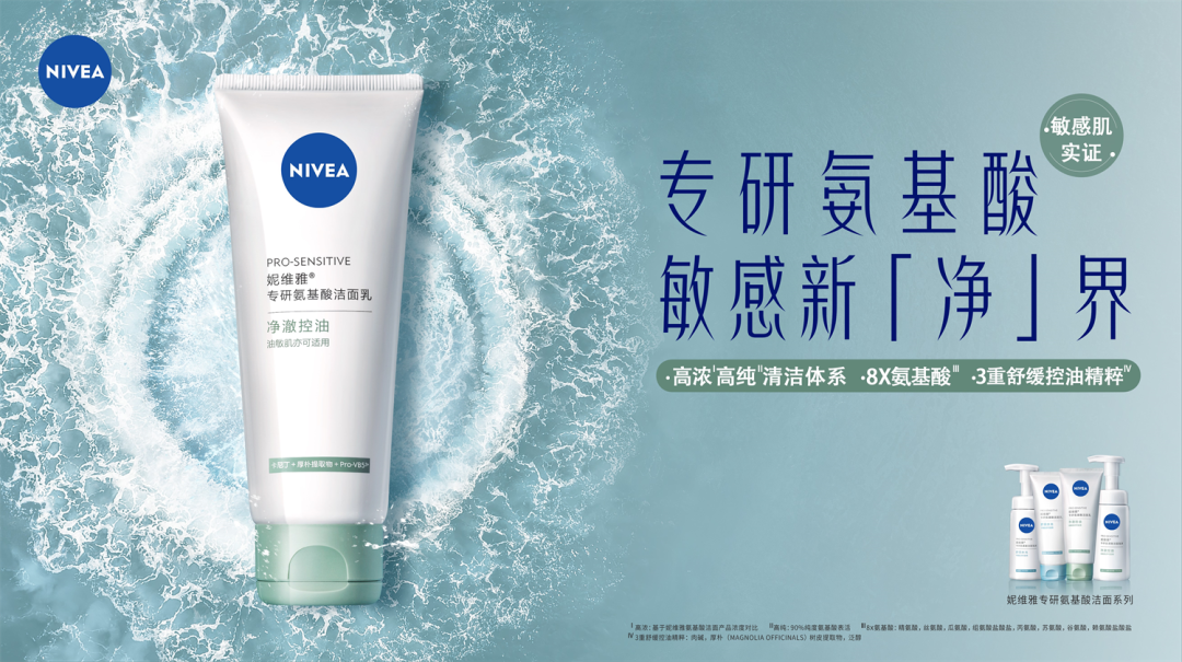 妮维雅专研氨基酸洁面乳,历经5年360次配方甄选,推出专为油敏肌定制洁面。全新专研氨基酸配方——19%高浓度表活,清洁力堪比皂基;90%高纯度氨基酸,杂质少更温和。