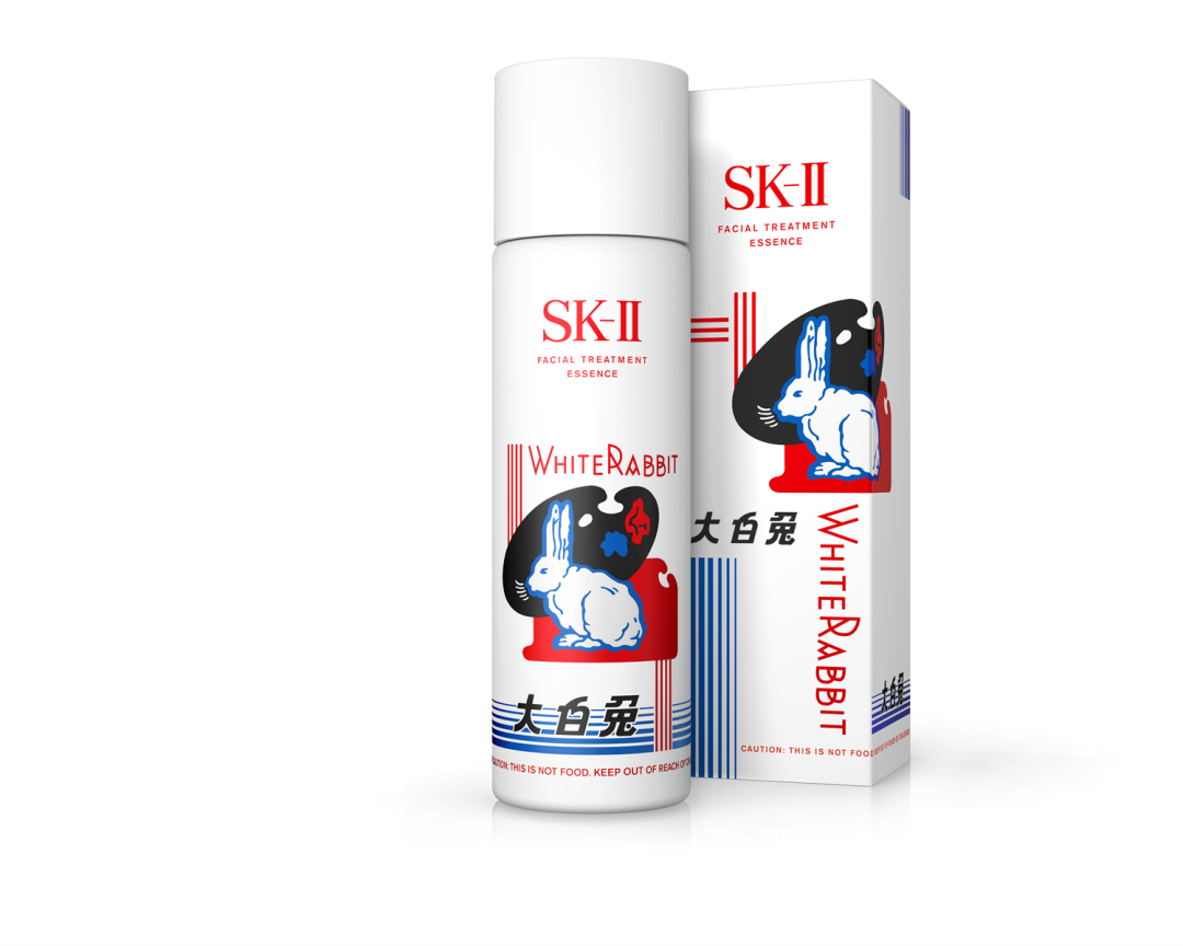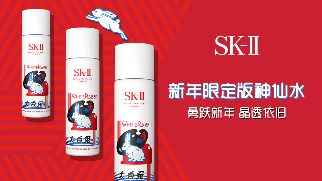 在新的一年里,SK-II鼓励大家一起勇跃向前,正如兔子作为积极和勇气的象征一般,勇敢地跃入新的一年,去开启未来的新体验。当有标志性PITERA™的经典版神仙水瓶子穿上白“外套”,遇上了经典大白兔形象的设计,这是SK-II迄今为止最具代表性的设计之一。