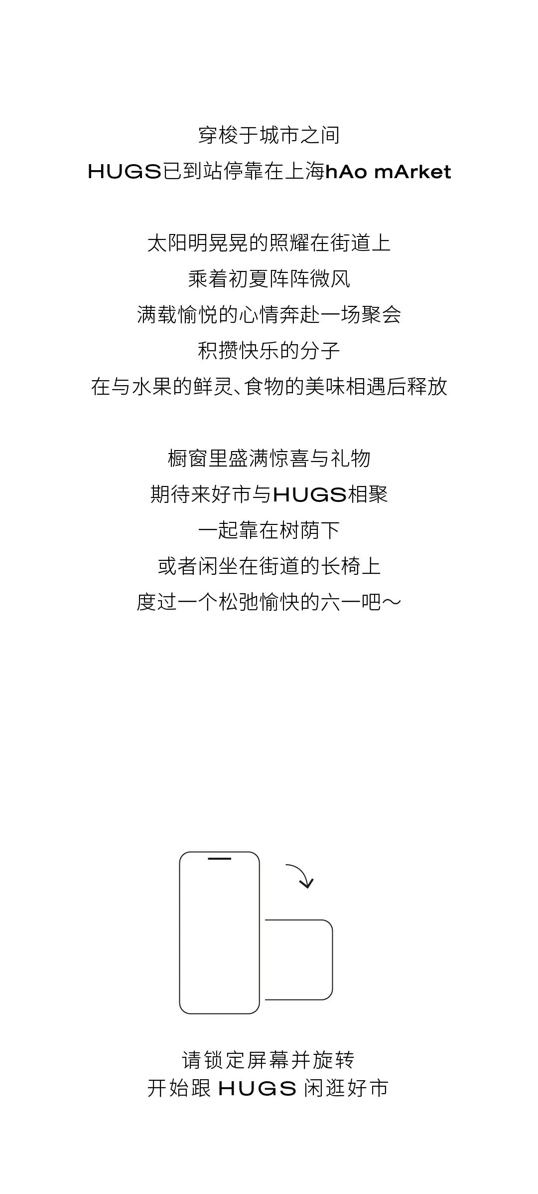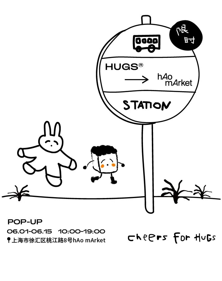 摘要:HUGS POP-UP in hAo mArket好市\x0a06.01-06.15\x0a10:00-19:00\x0a上海市桃江路8号hAo mArket