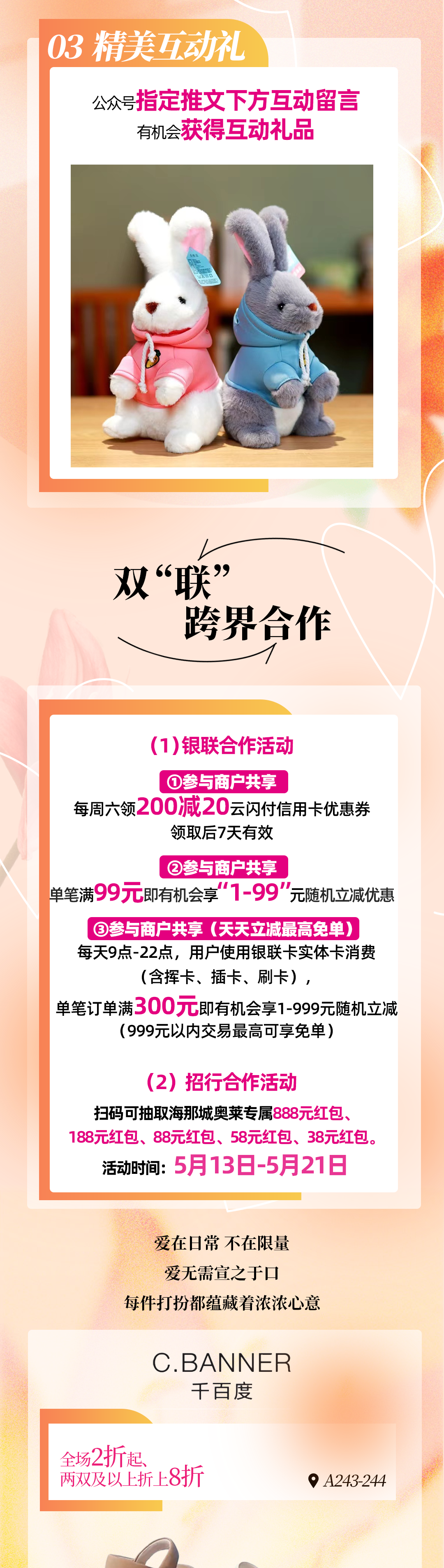 文章内容来源于公众号:百联海那城奥莱,点此可查看原文,内容版权归相关企业所有,本网站仅供交流学习。若涉及版权问题或存在侵权情况,请及时与我们联系,我们将第一时间进行删除处理。