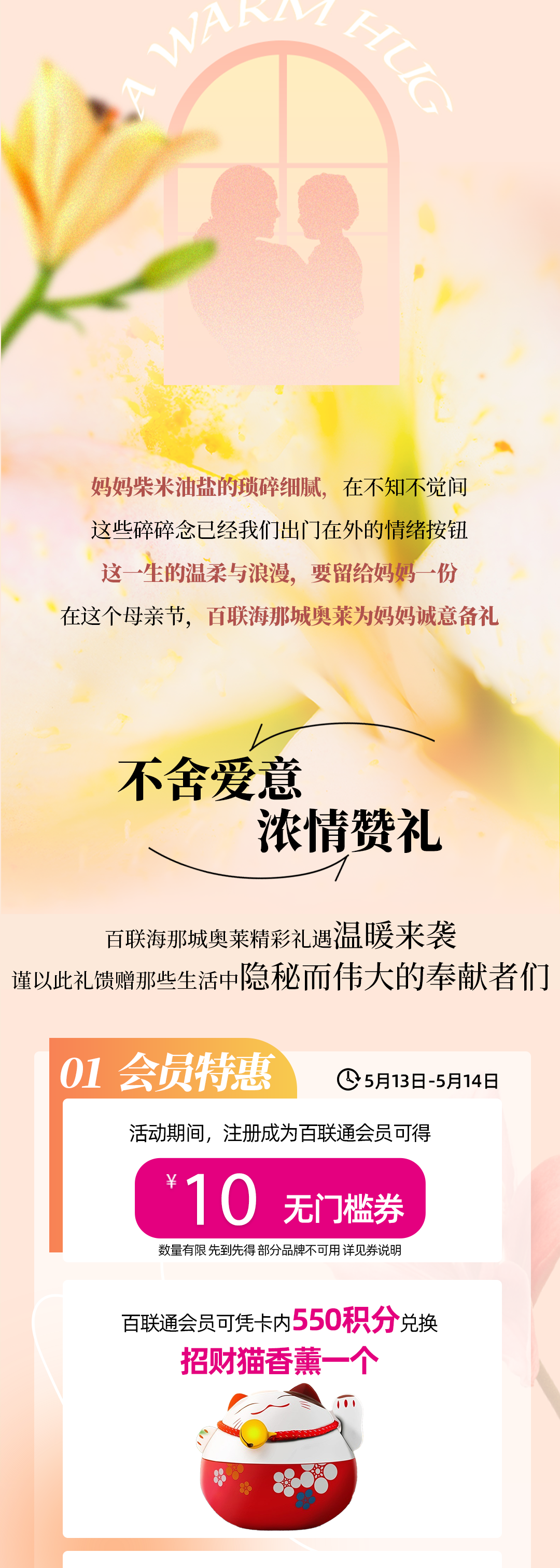 摘要:母亲节感恩钜惠\x0d\x0a快莱百联海那城奥莱购好物