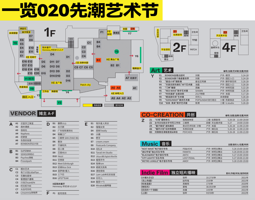 城市活力的内核源于青年文化,广州的青年群体庞大,却少有深度的艺文活动,许多优秀的尝试,事实上并没得到应有的关注。而020先潮艺术节就像是一个适时的平台或窗口,让更多主流之外的创作者被看见,让观者获得了不再单一的活动体验和精神补给,也滋养了城市的灵魂。用轻快的粤语口语做转化,「潮吓先啦!」是这场艺术节的基因。市集、艺术、音乐、共创四大板块各占一片山头,游览没有标准的线路图,只管自由地「迷路」就好。*点击查看更多