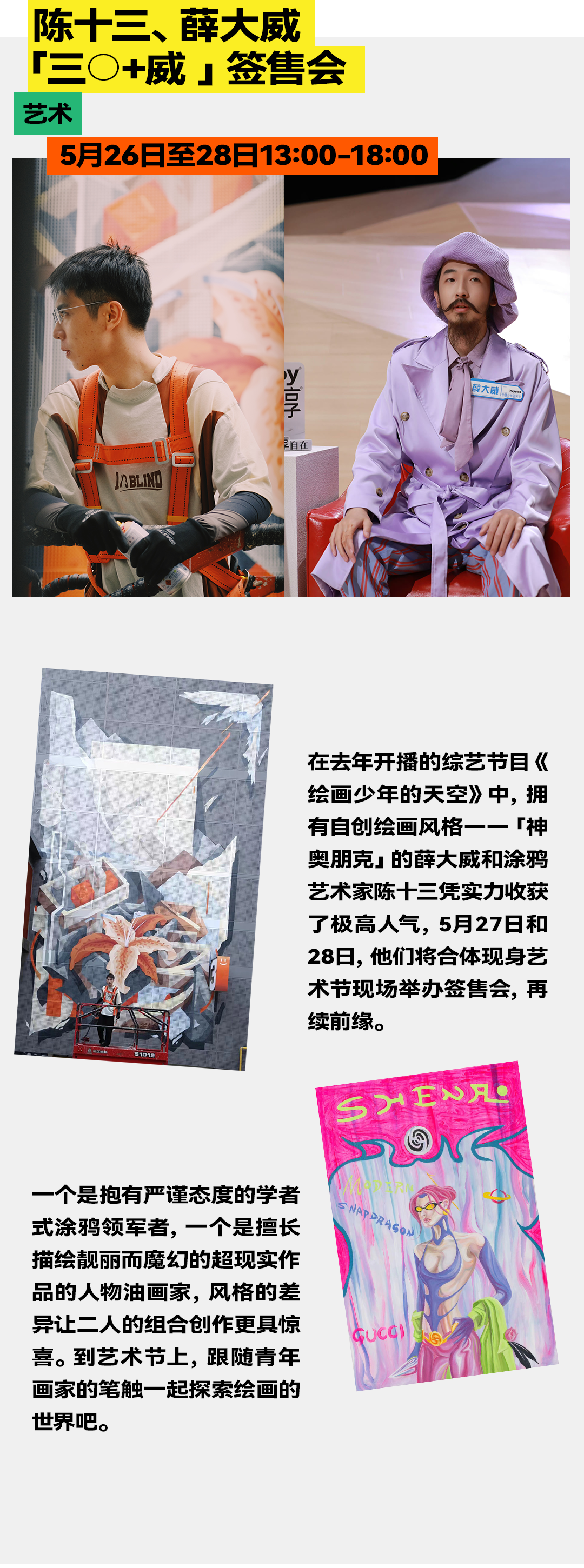 年轻人的派对少不了音乐助兴,艺术节上也会有20余个音乐人现身,用5场各具魅力的演出掀动热潮。![]()