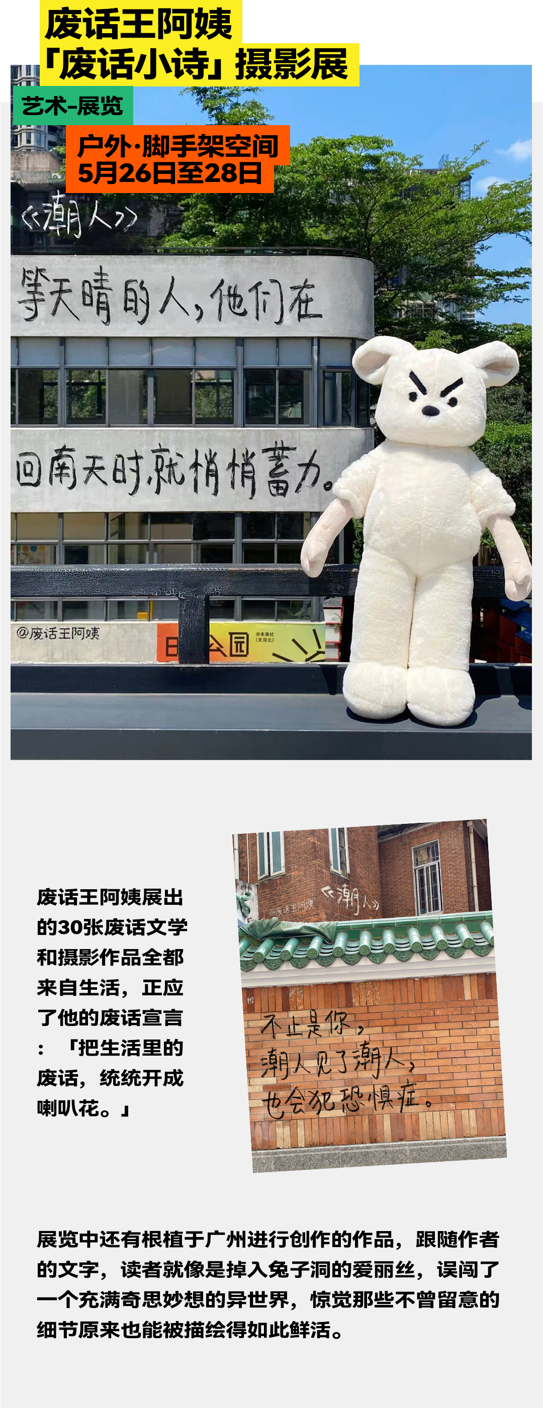 翻看天气预报,接下来的周末刚巧会放晴,不妨就伴着雨后的透彻空气去打卡这场可玩、可看、可听、可感知的艺术节。期待能在020先潮艺术节上见到你,开怀迎接和盛夏一起到来的,井喷式的先锋潮流文化吧。