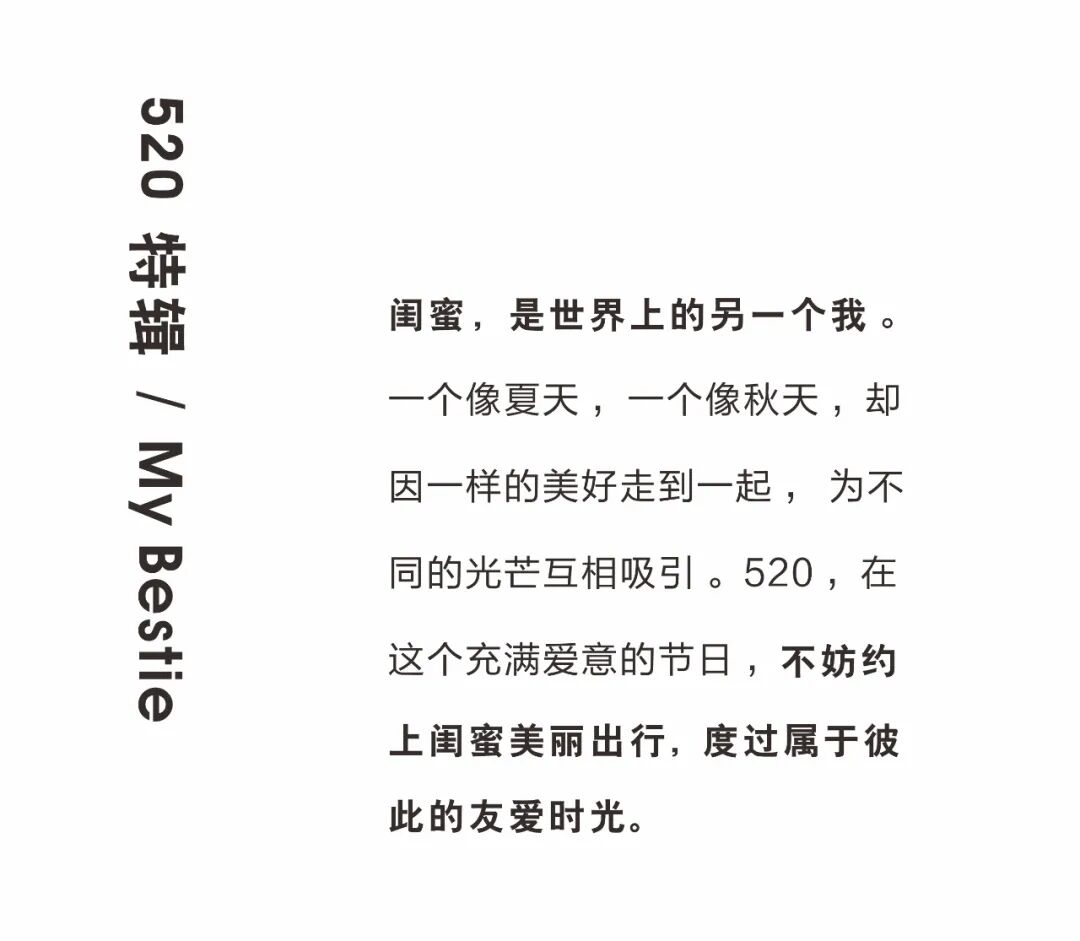 摘要:闺蜜,是世界上的另一个我 。520 ,在这个充满爱意的节日 ,不妨约上闺蜜美丽出行,度过属于彼此的友爱时光。