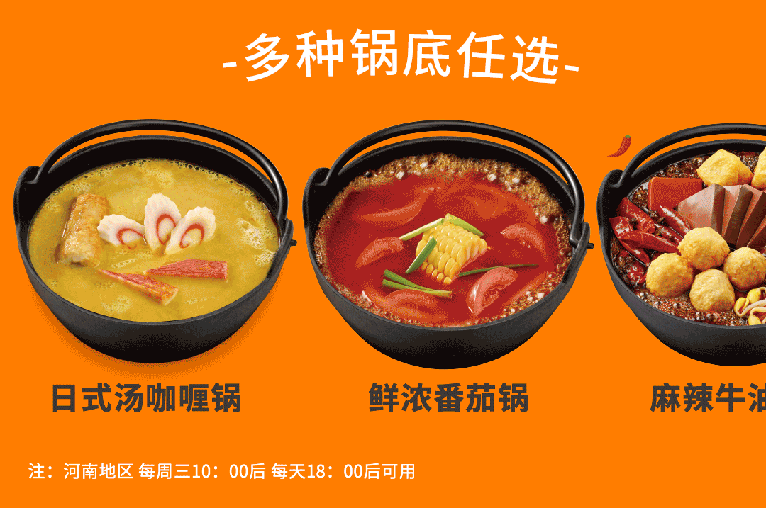 (4)仅限在「吉野家吉食汇」小程序-堂食/外带服务订餐时使用,若需外带需额外支付打包费用。单人火锅买一赠一(口味任选)限制有效期内指定时间内使用,每家火锅餐厅营业时间有所不同,以门店实际为准。