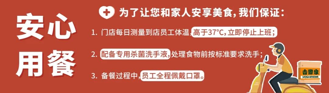 8.【客服热线】:如有任何疑问,请联系吉野家客服热线:4008197197-9(工作时间:每天9:00-21:00)。