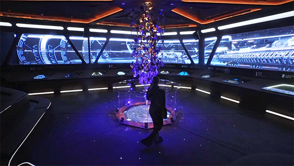 选址于AI PLAZA西岸凤巢,3400㎡的超大空间化身为人类恒星级战舰“万有引力”号,从入场那刻起,观众便仿佛置身于浩瀚宇宙间,伴随着眼前的声光电,震撼到令人失语!
