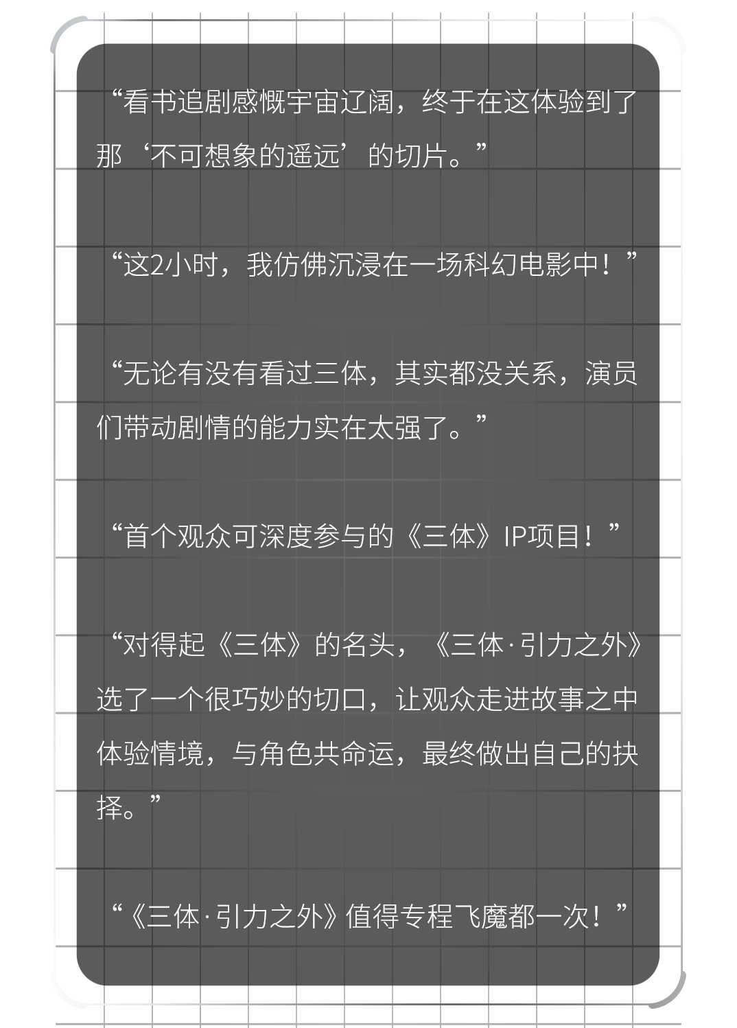 在这张高分答卷的背后,以“实景沉浸+虚实共生”形式呈现的《三体·引力之外》,堪称一次前所未有的沉浸式五感体验。