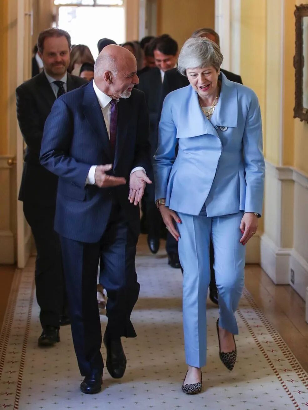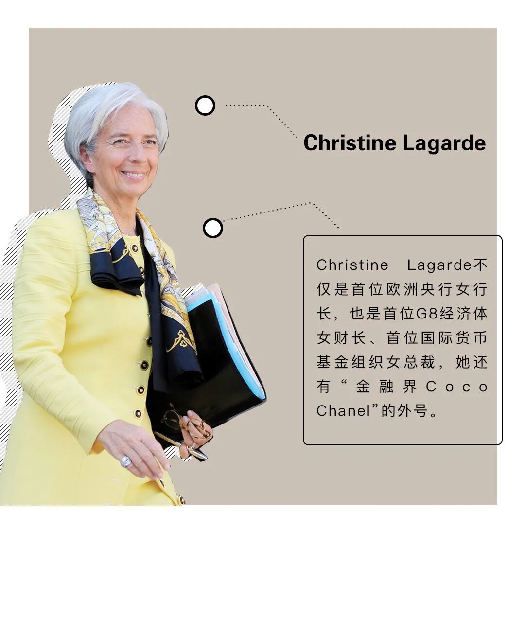 她所在的领域大都是男性占主导,当其他女性努力看起来像男人的时候,她不介意展示自己的女性气质。她会用好看的鞋子装饰自己,并不执著于塑造“严肃”的形象。这也曾经给她带来一些麻烦。某次面试她穿了一双坡跟鞋,结果第二天被媒体批评过于时尚。她回应到:“媒体不应该询问女性候选人的发型、穿裤子还是裙子或者选什么鞋子。这都无关紧要,这是性别歧视。” 在成功的女领导人中也有很多人不吝啬于展示自己。Theresa May就以大胆的鞋履选择而闻名。![]()